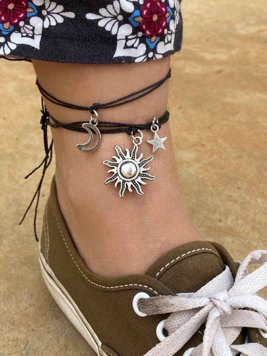 Material: Cordão encerado e pingente de metal. Medida: 32cm. De amarração.