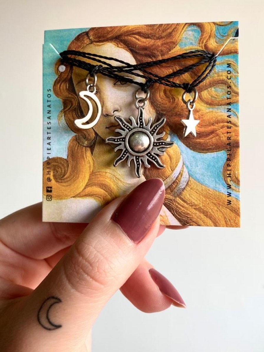 Lua: A lua representa a feminilidade. Ela influencia as marés, as emoções, e também exerce influência sobre a agricultura, a colheita e sobre os ciclos de fertilidade. Estrela: Estrelas são consideradas guias, e podem nos auxiliar a compreender nosso propósito de vida e a despertar a consciência espiritual. As estrelas são vistas como símbolos de luz, sabedoria e orientação. Sol: No sentido simbólico, o sol representa o impulso da vida. Por ser um astro que clareia e irradia, está associado ao autoconhecimento, ao amor próprio e à confiança em si mesmo.