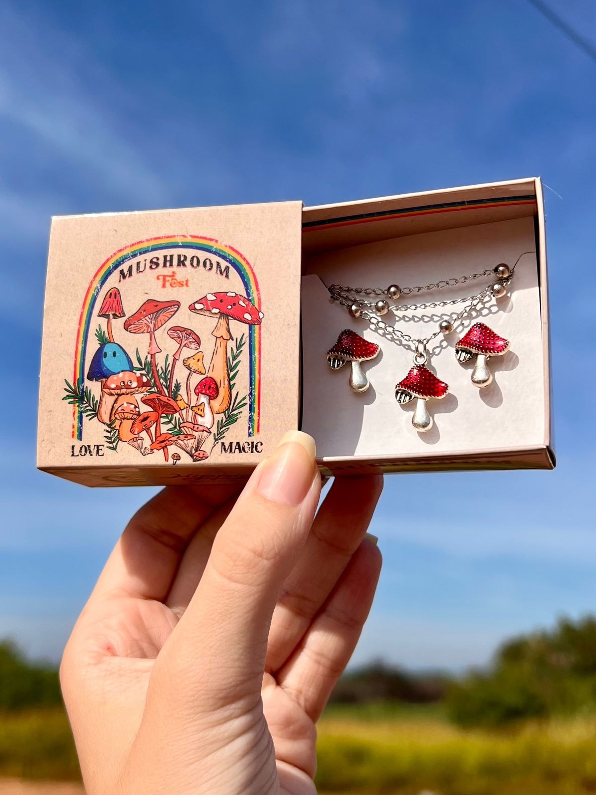 Feitos de Zamak. Colar com 45cm. Cogumelo com 1,8cm x 1cm.