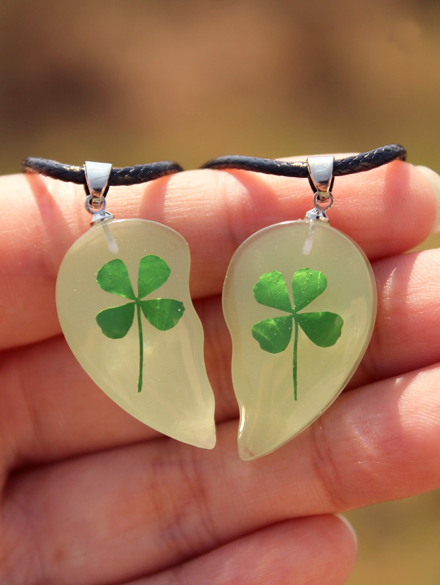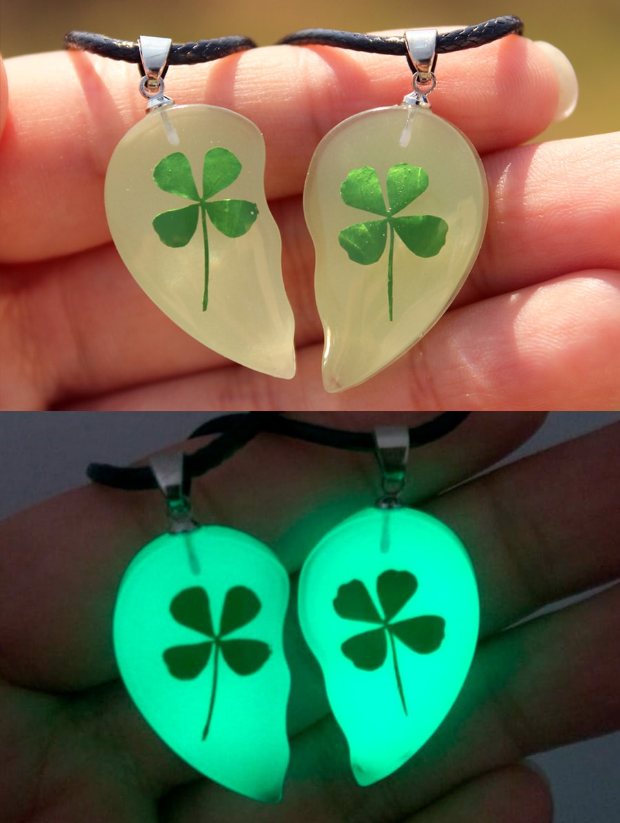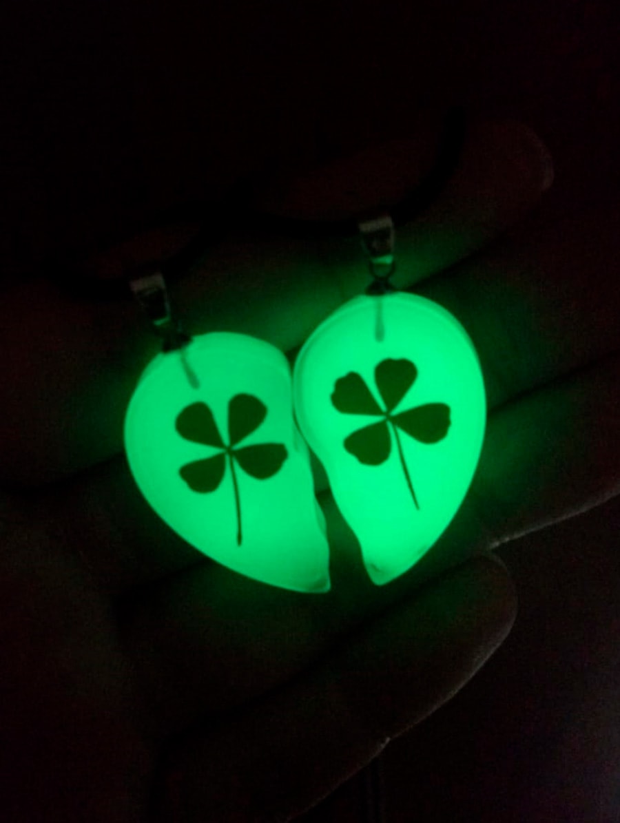 Conjunto de Colares Trevo de 4 folhas - Brilha no Escuro