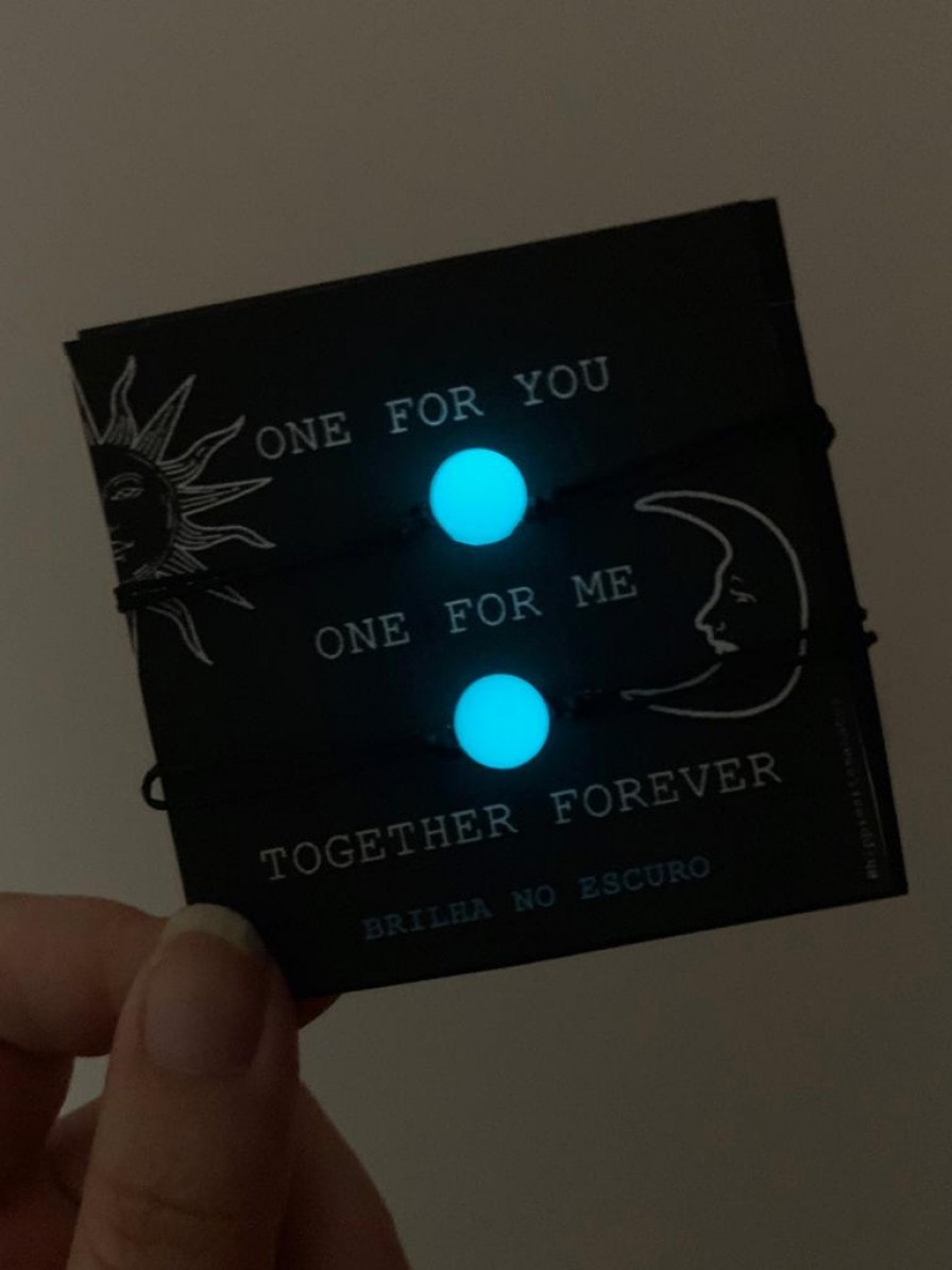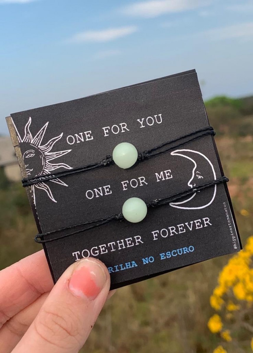 Uma para mim e outra para você <3 O conjunto de pulseiras Together Forever representa uma relação profunda e intensa. As pedras usadas para a composição brilham no escuro, mostrando que essa relação se mantém viva em todos os ambientes e situações.
