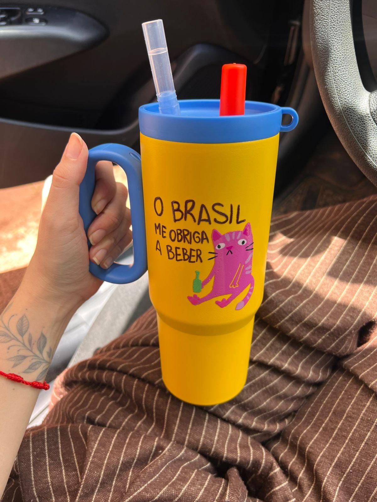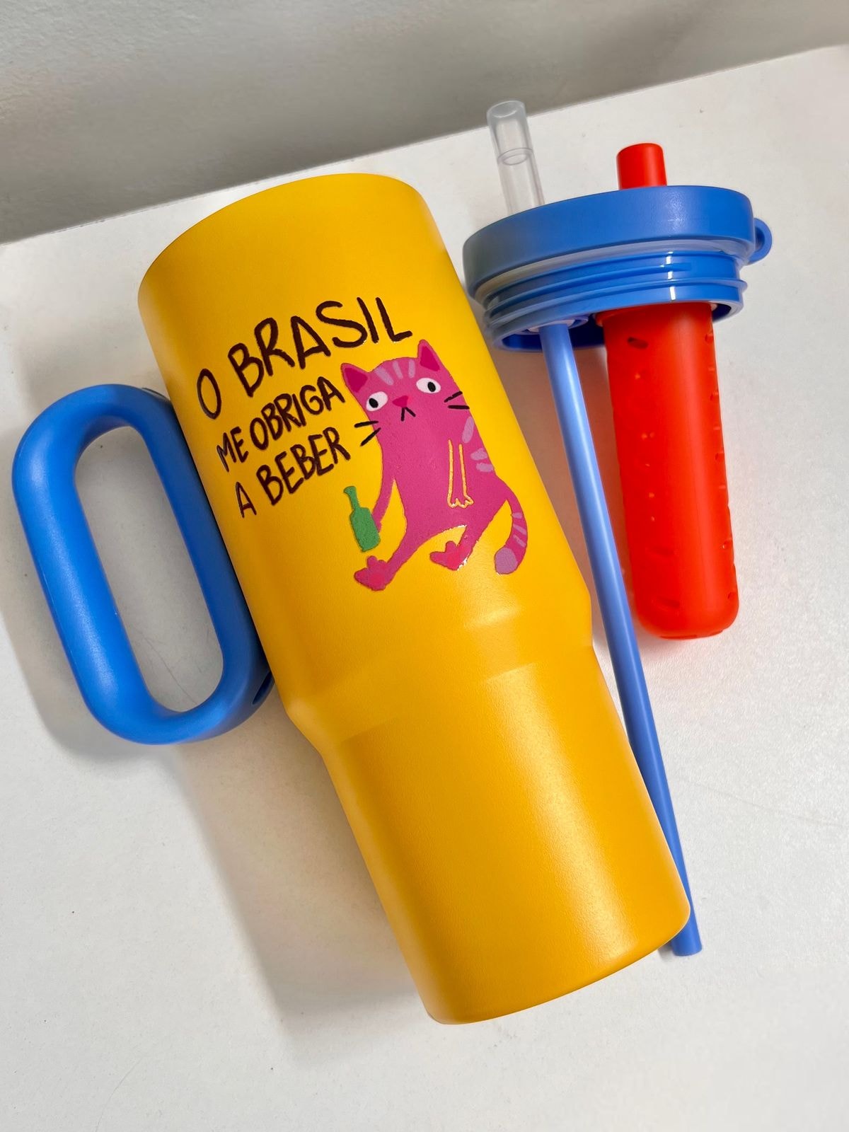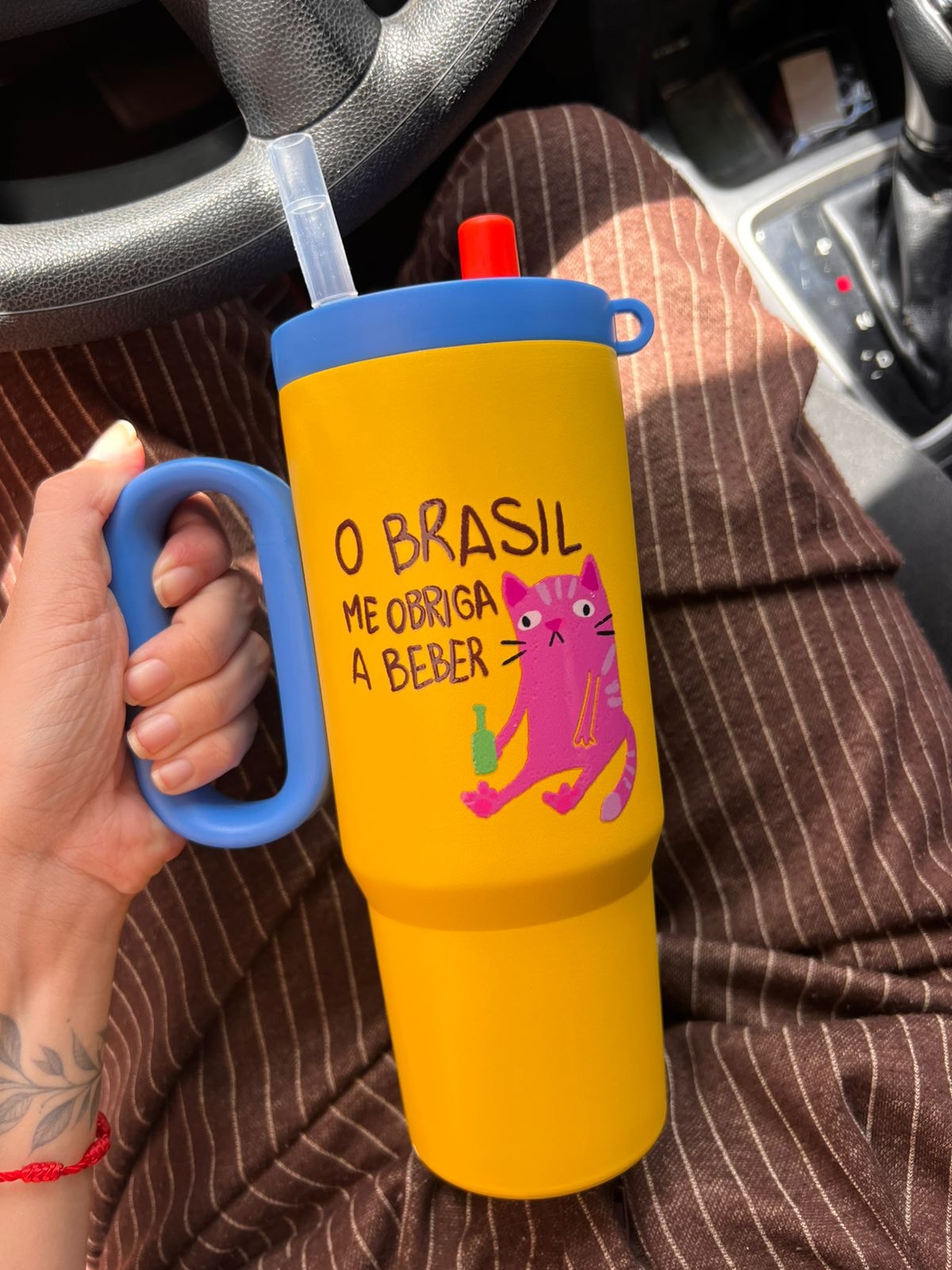 Copo Garrafa Térmica 750ml - Gato Brasil me Obriga