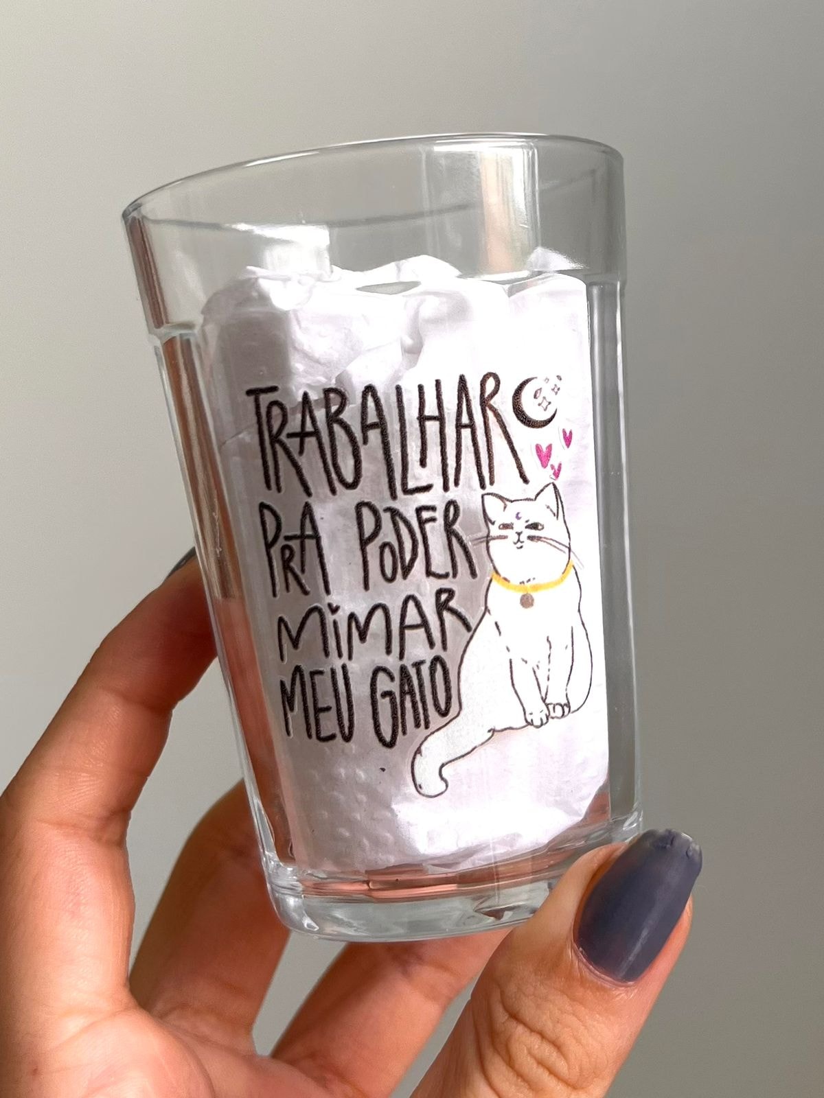 Copo Trabalhar pra Mimar meu Gato - Vidro 190ml