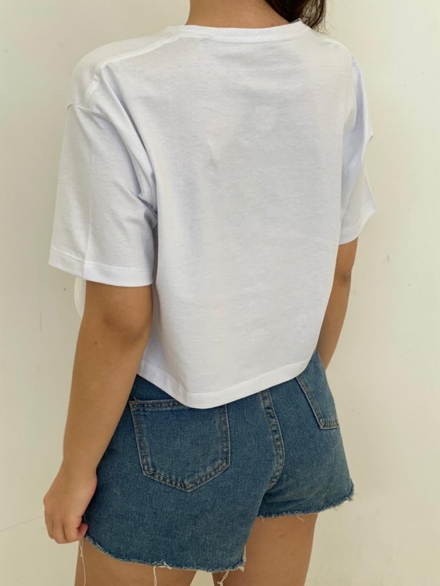 Não é muito curto e as mangas têm estilo mais largo e comprido.