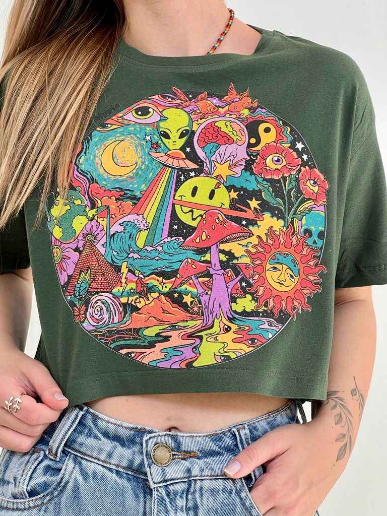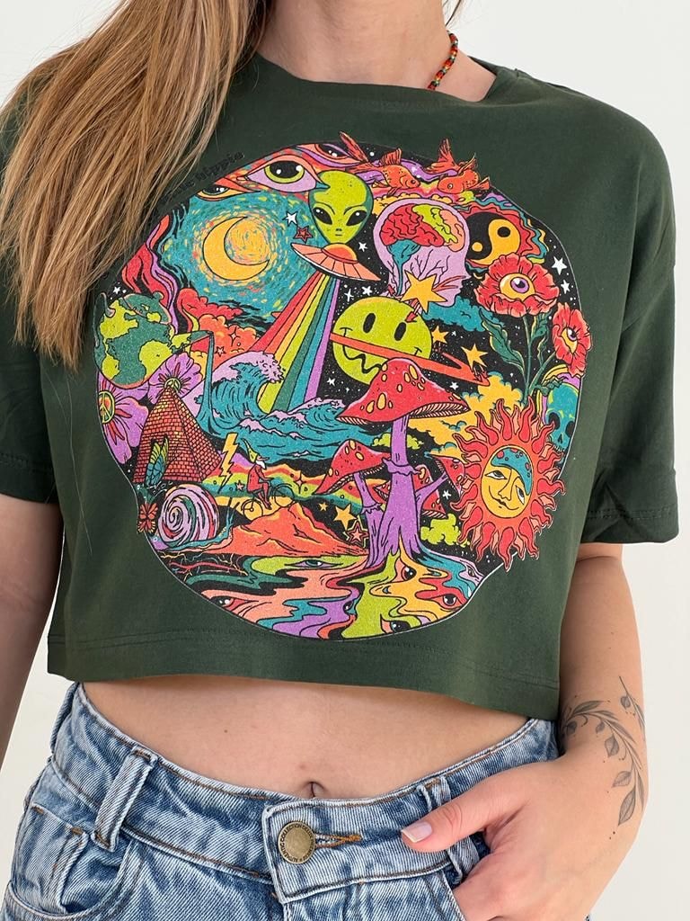O cropped Trip Hippie é para quem gosta da vibe psicodélica.