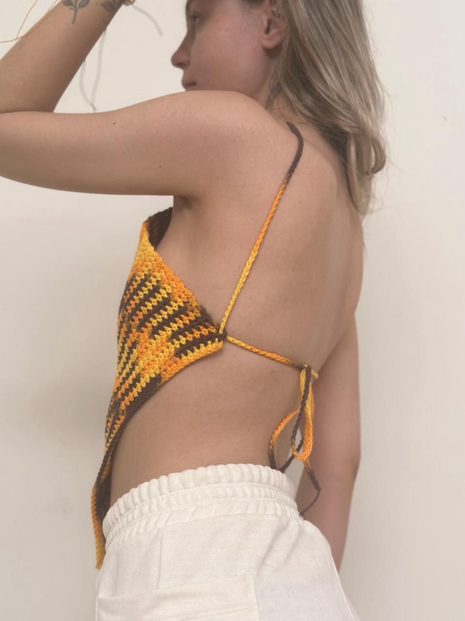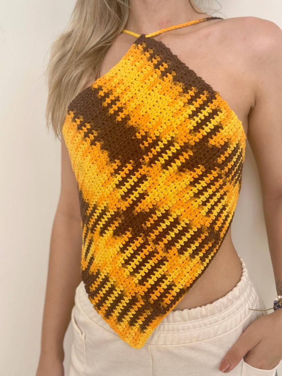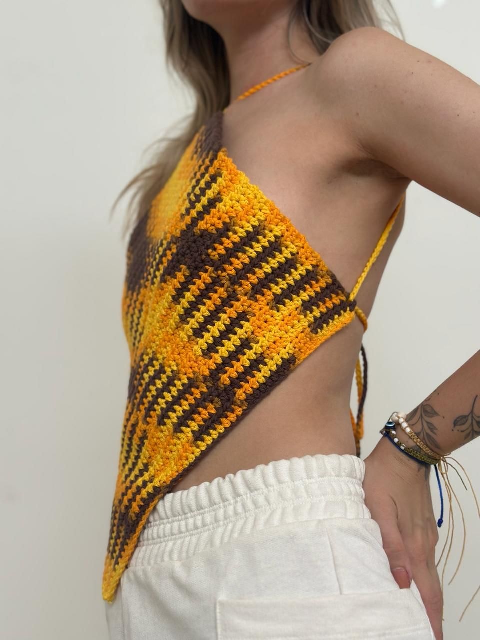 Ao imprimir identidade e raízes às peças, o cropped de crochê também valoriza uma moda desacelerada, baseada nos princípios de slow fashion.