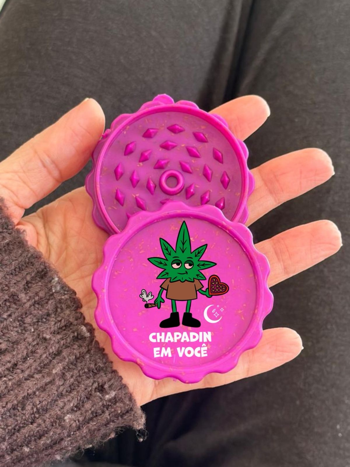 Também chamado de moedor ou triturador de ervas, este dichavador feito de fibra de coco é um produto sustentável.