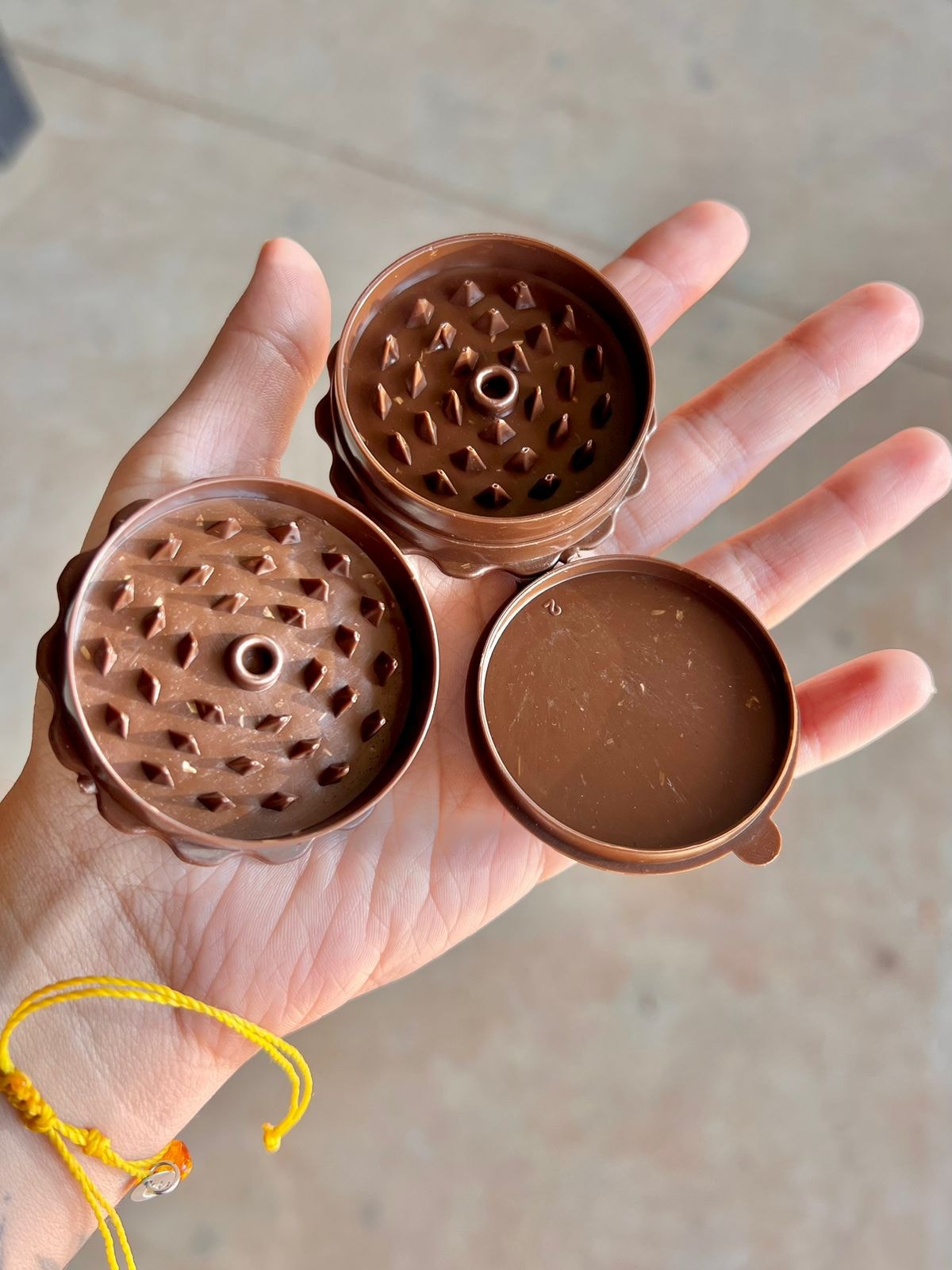 Também chamado de moedor ou triturador de ervas, este dichavador feito de fibra de coco é um produto sustentável.