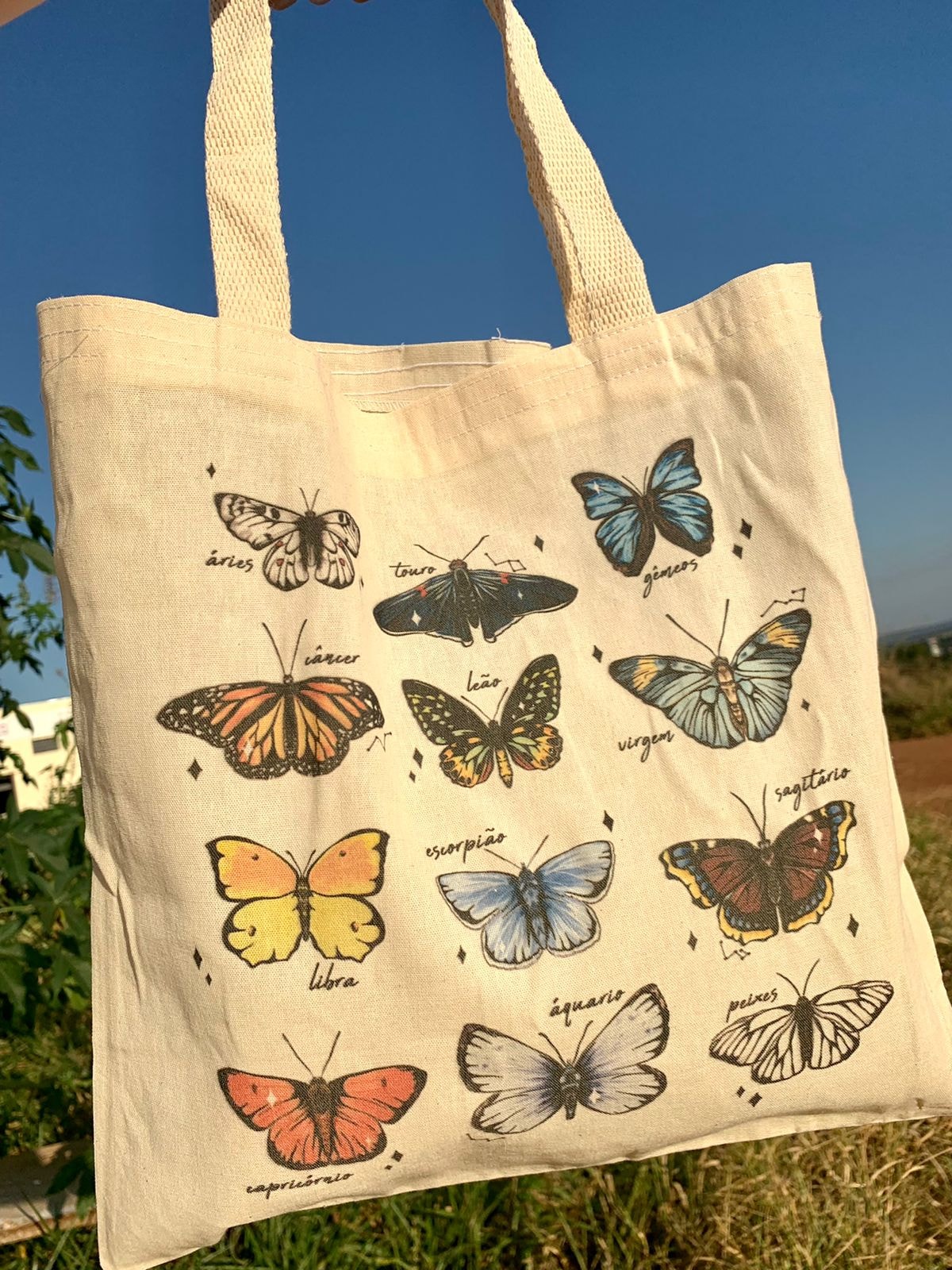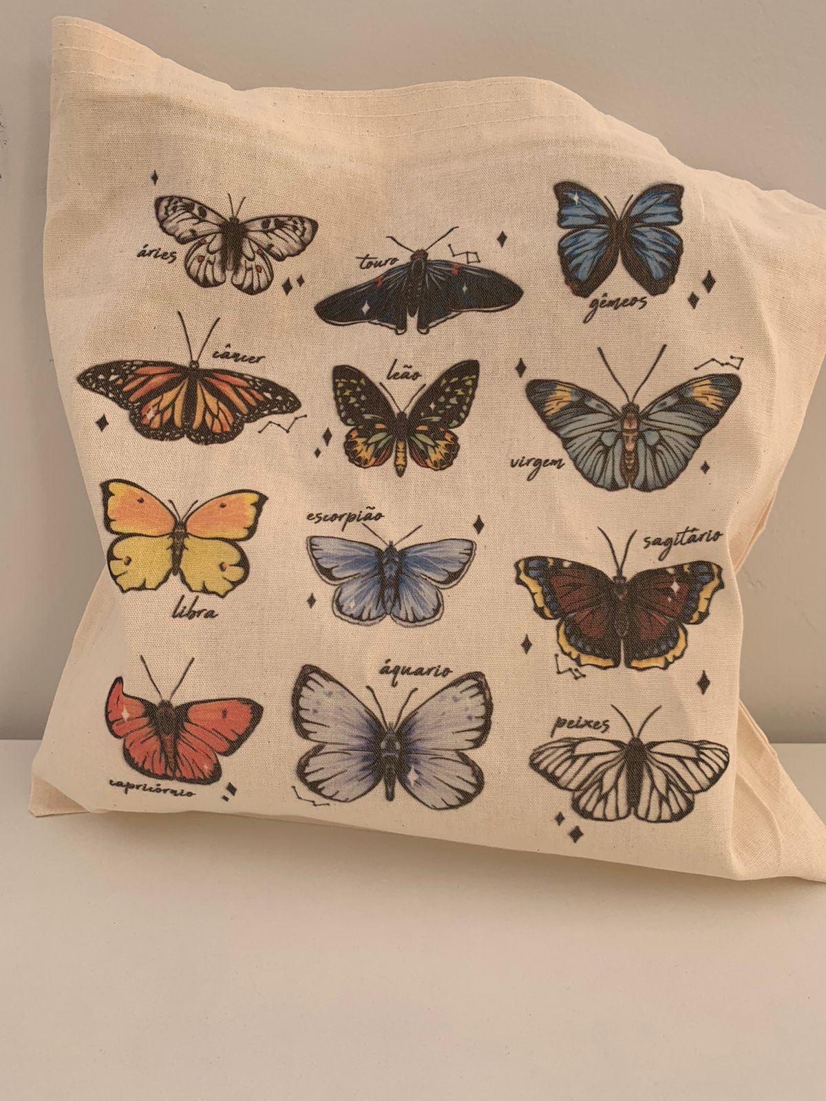 Na ecobag Borboletas Astrais, reunimos as borboletas que representam cada signo do zodíaco.