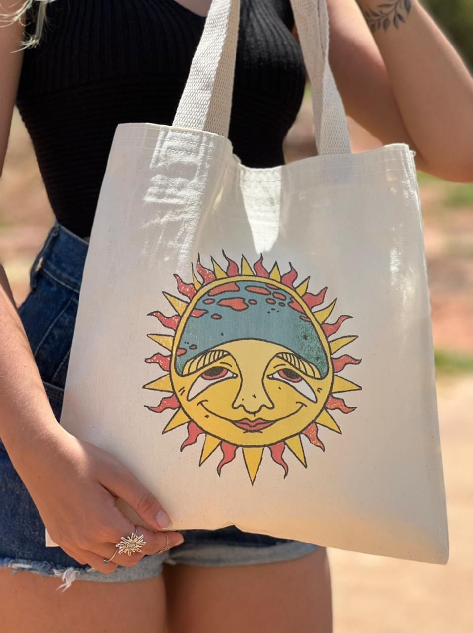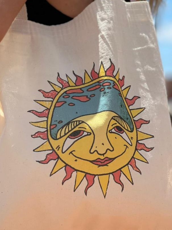 A ecobag Faísca da Coragem traz o sol como símbolo deste impulso inicial.