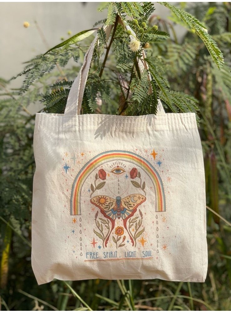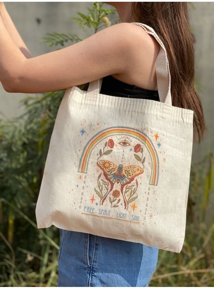 A ecobag Free Spirit celebra os espíritos livres e as almas leves. Ter espírito livre é viver com autonomia, liberdade e leveza, sem se prender às expectativas alheias.