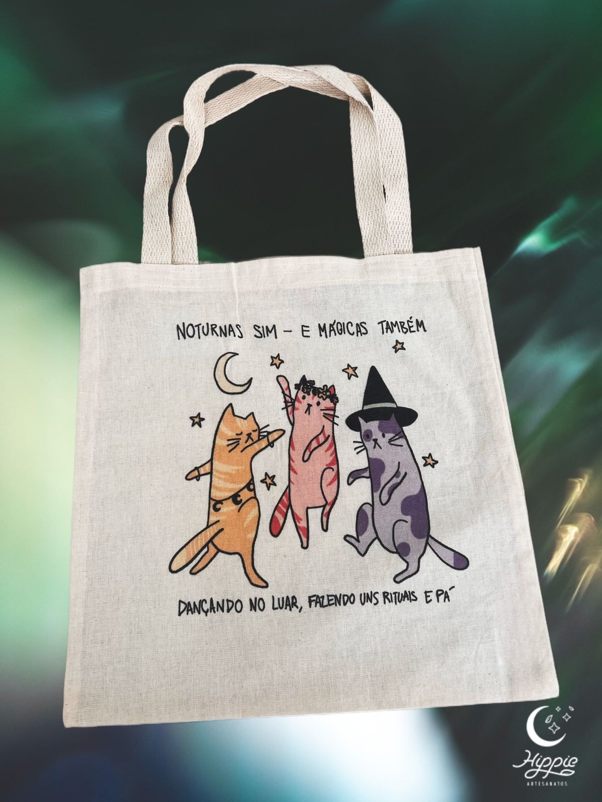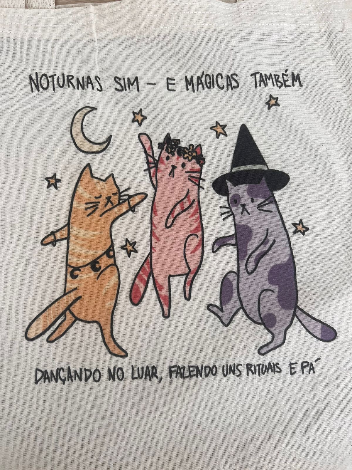 A ecobag Gatas Noturnas é para as místicas e mães de pet, que adoram fazer rituais durante as noites enquanto seus gatos ronronam no seu colo.