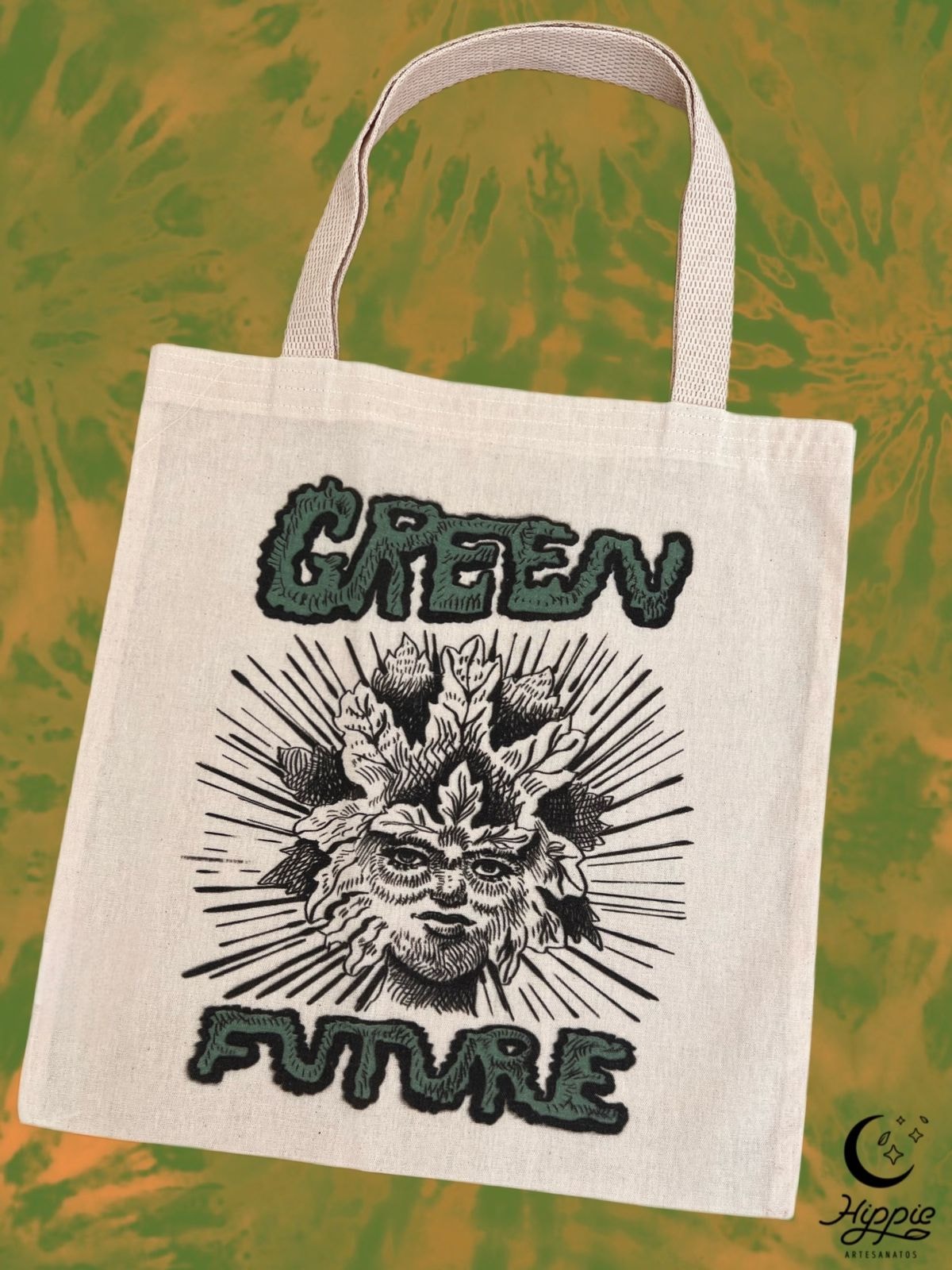 A estampa Green Future é sobre olharmos para trás para tomar decisões para o futuro, uma homenagem aos saberes ancestrais que reverenciam a natureza e seu poder de cura, proteção e purificação.