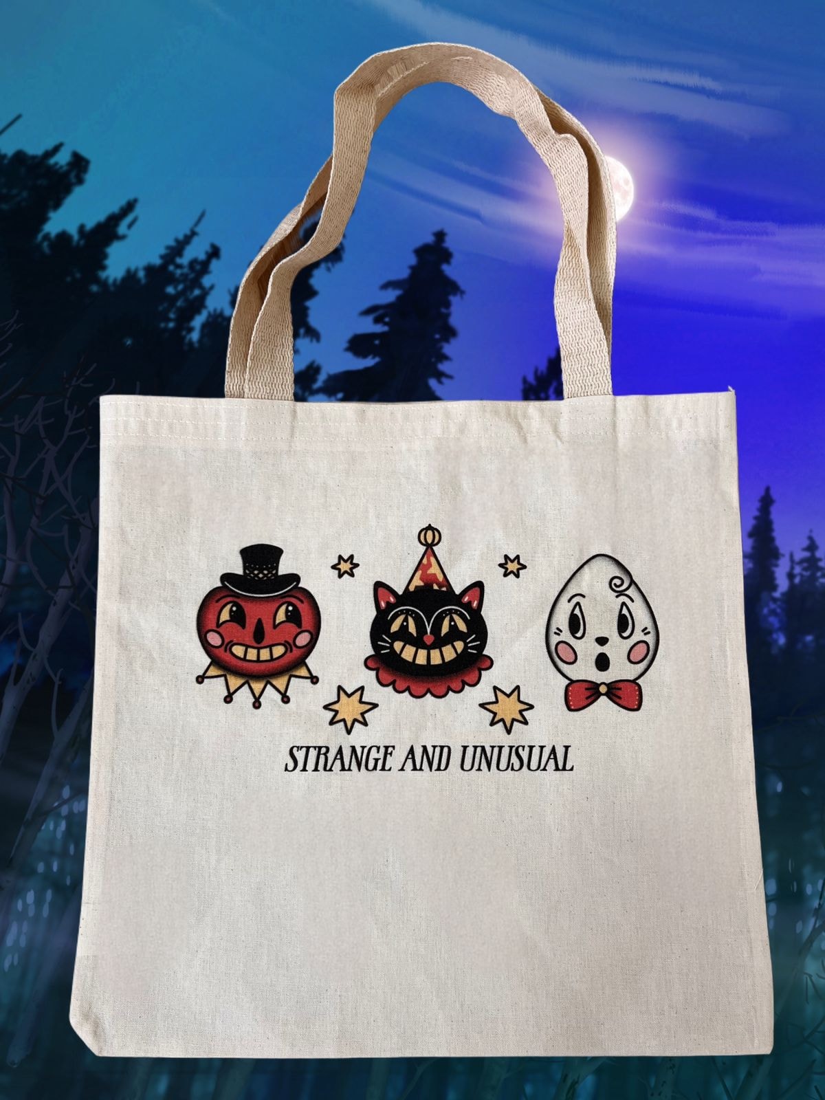 A ecobag Halloween Vintage foi inspirada no estilo gótico, mas sem perder o bom humor.