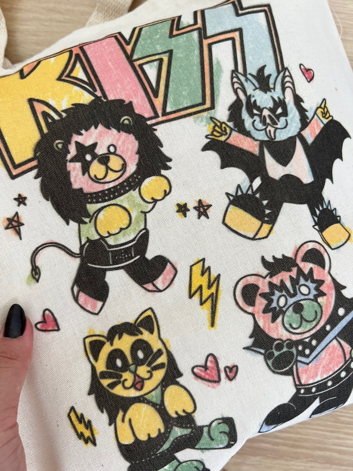 Sem perder a identidade rockeira do Kiss, mas dando um toque de fofura que remete à infância, a ecobag Kiss é um jeito divertido de demonstrar seu amor pela banda.