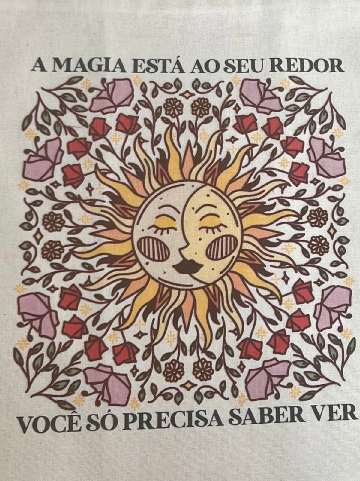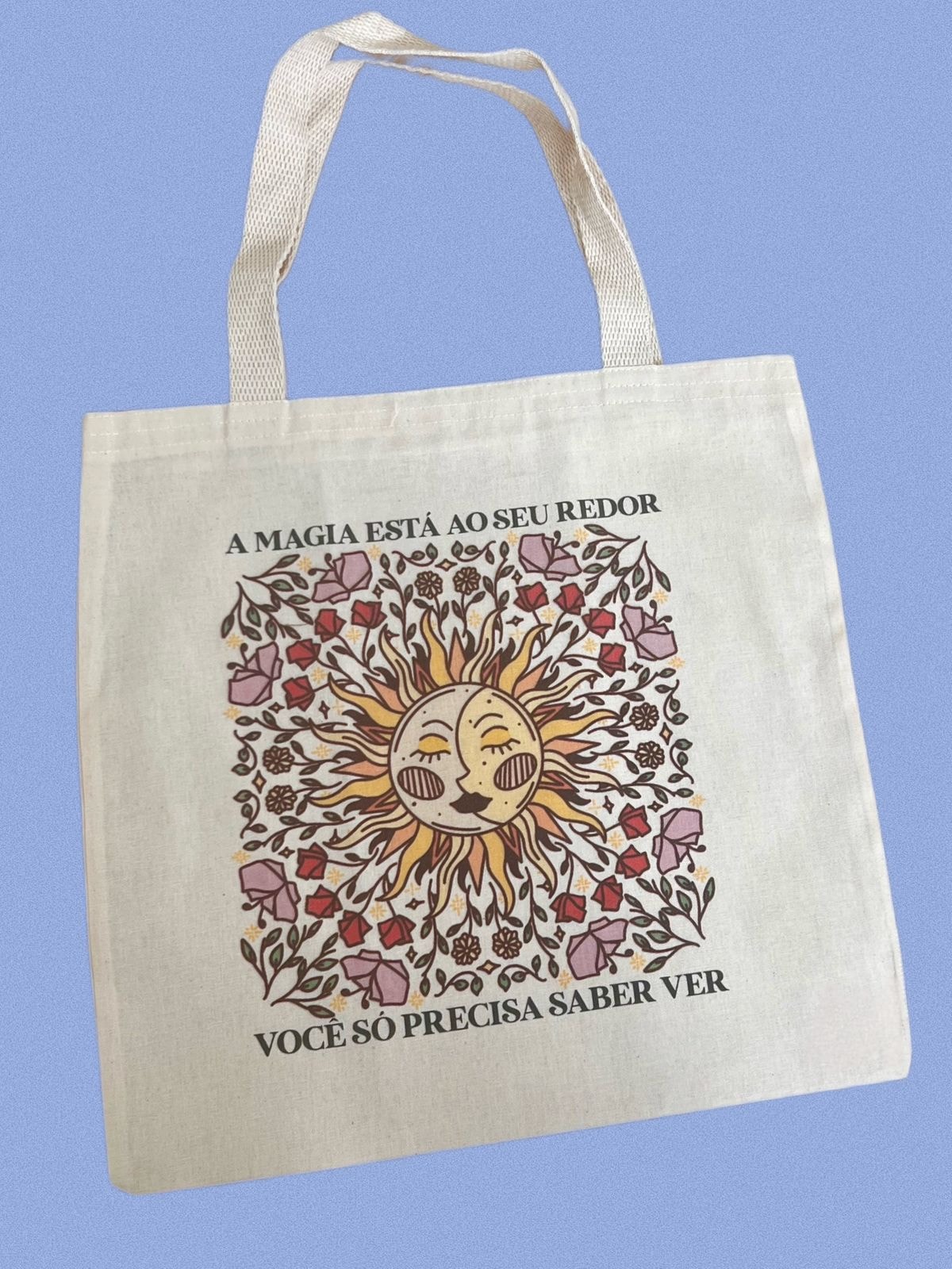 A ecobag Magia ao Seu Redor faz um convite para você se atentar aos detalhes, às belezas ocultas, aos encantos da natureza.