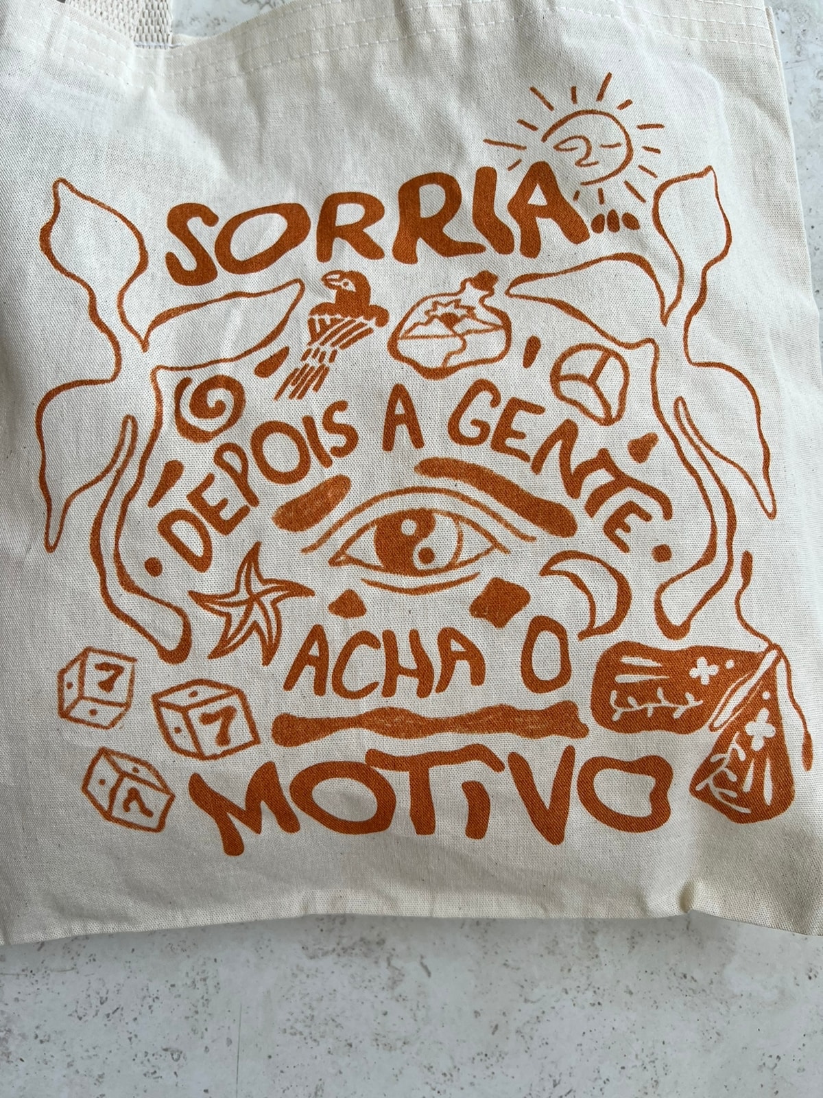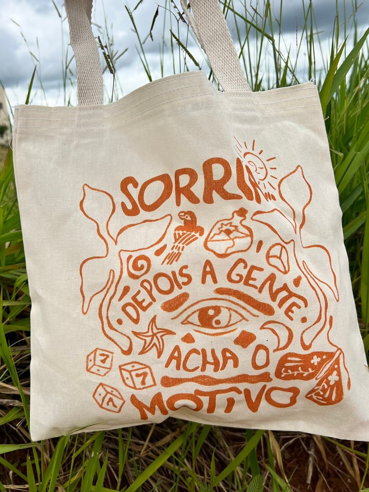 A ecobag Motivo Para Sorrir veio te lembrar que a positividade vem antes do acontecimento positivo.