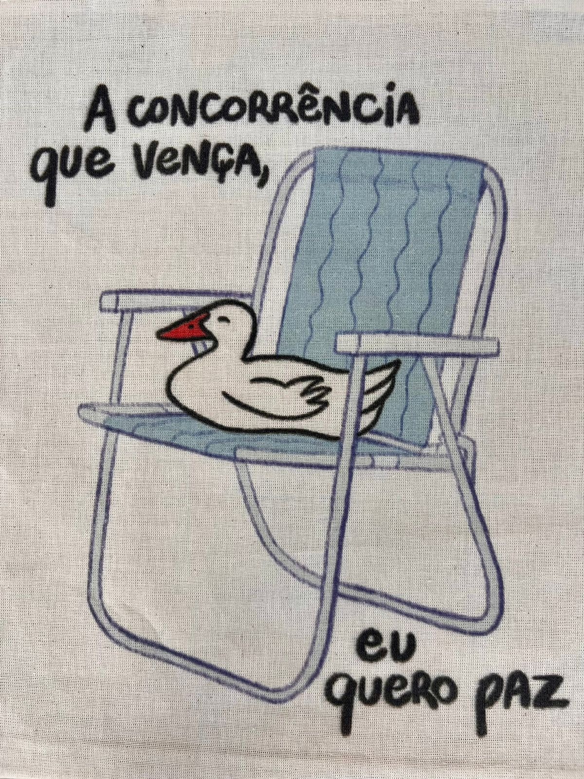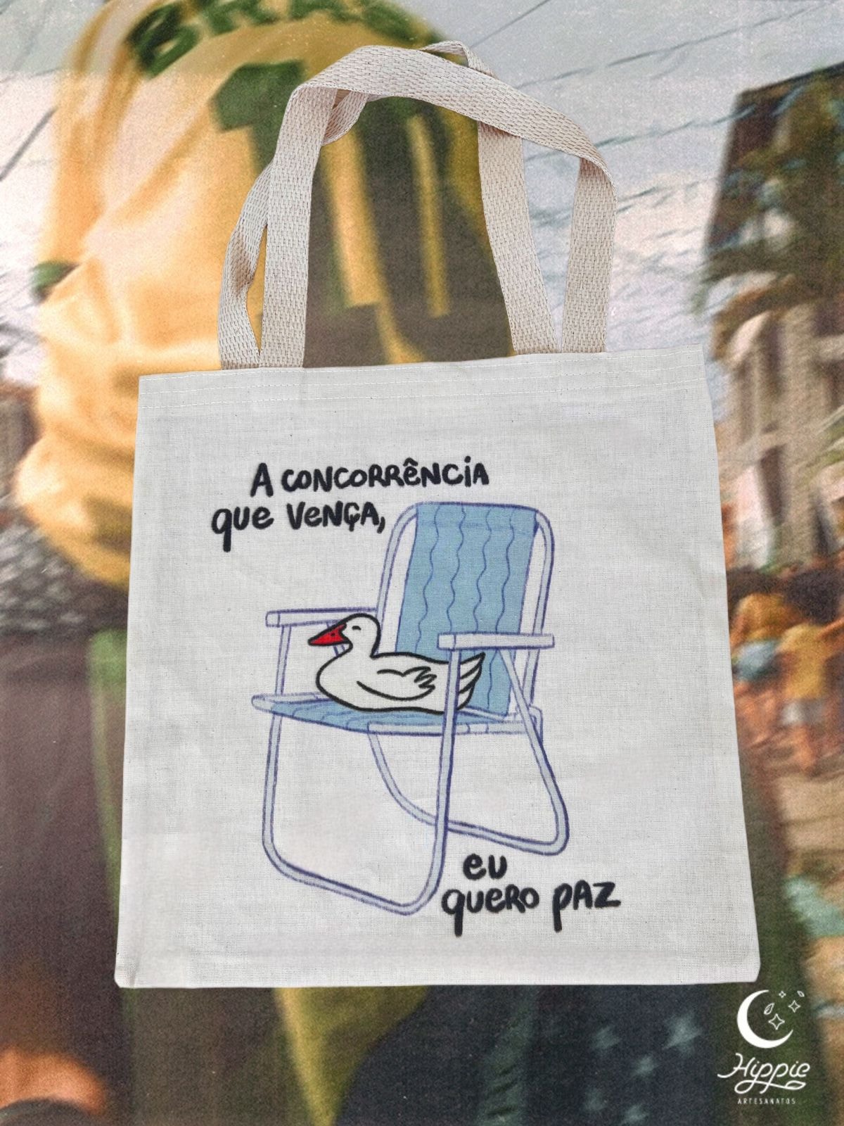 A concorrência que vença, porque eu nem disputo. A ecobag Pato A Concorrência Que Vença foi feita para quem preza a paz mais do que a competição. Nada melhor do que estar bem consigo mesmo e aproveitando a vida enquanto a concorrência disputa sozinha.