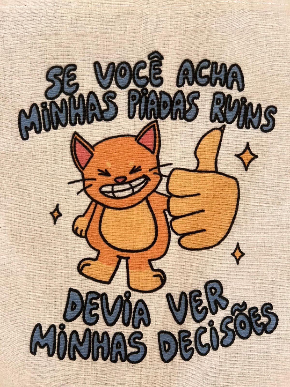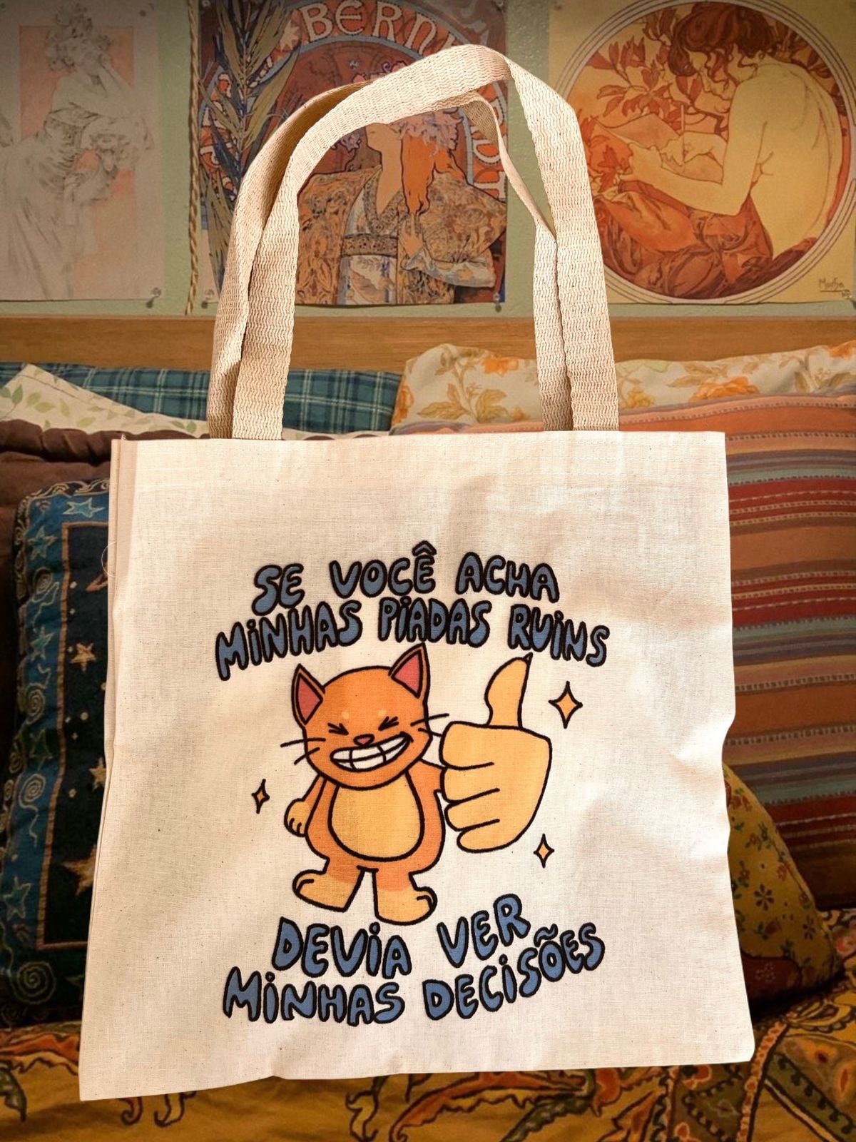 A ecobag Piadas Ruins e Decisões Piores foi feita para quem sabe rir de si mesmo e levar a vida com leveza.