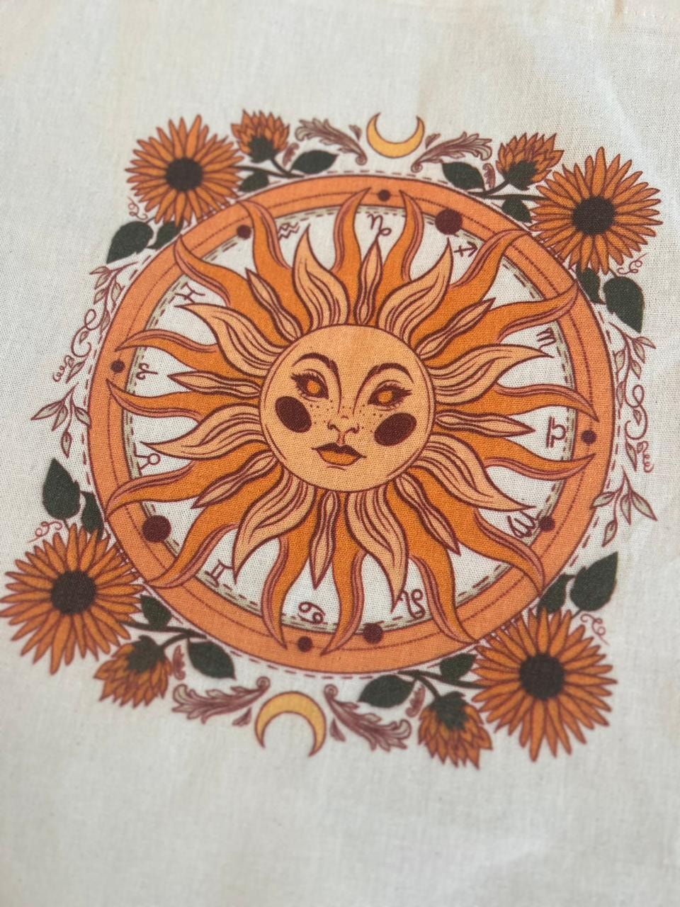 A ecobag Sol Floral é uma homenagem ao Astro Rei, que nasce para todos com generosidade e sem seletividade.