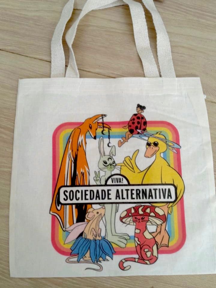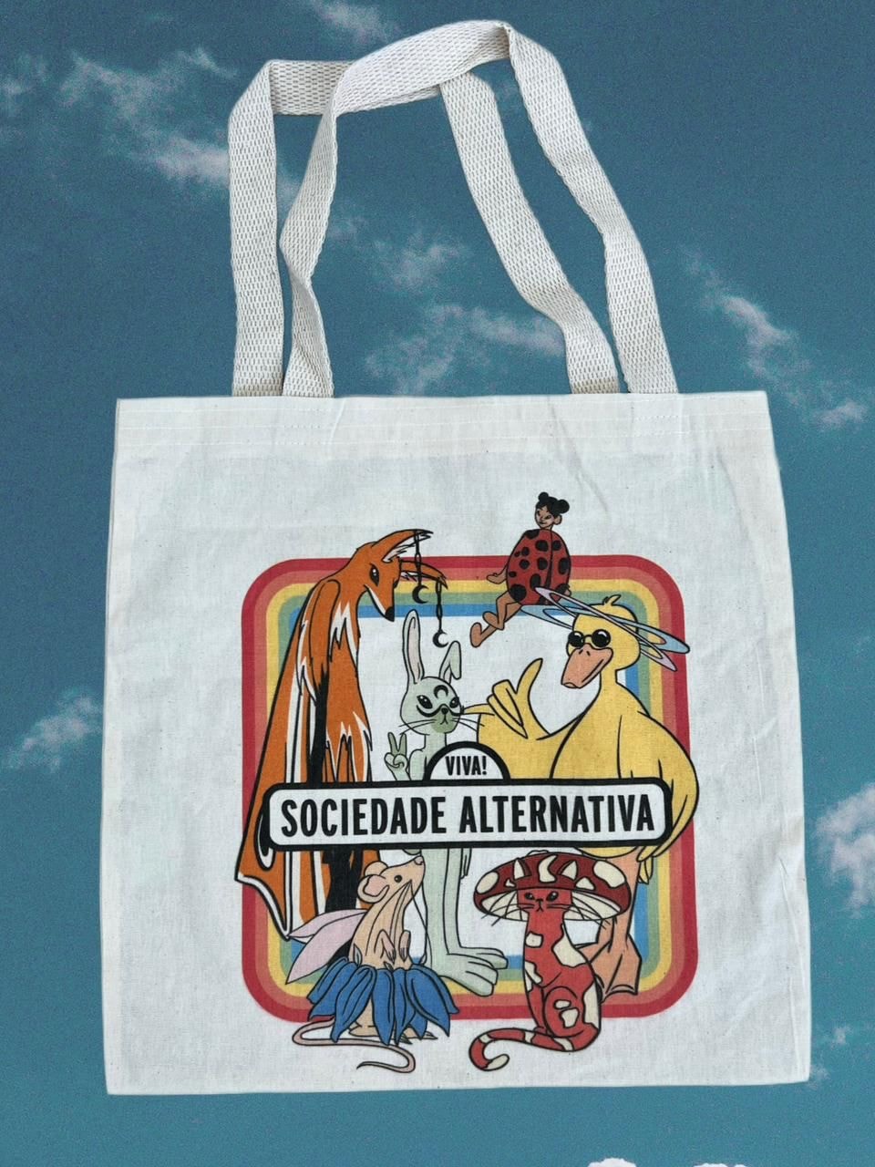 A ecobag Viva a Sociedade Alternativa tem um jeito divertido e único de celebrar aqueles que vivem a vida a seu modo, sem medo de serem quem são e sem se preocupar em atender às expectativas alheias.