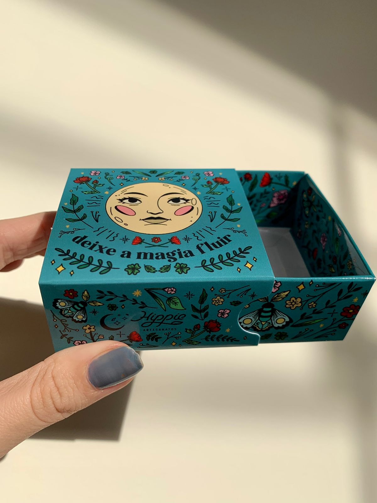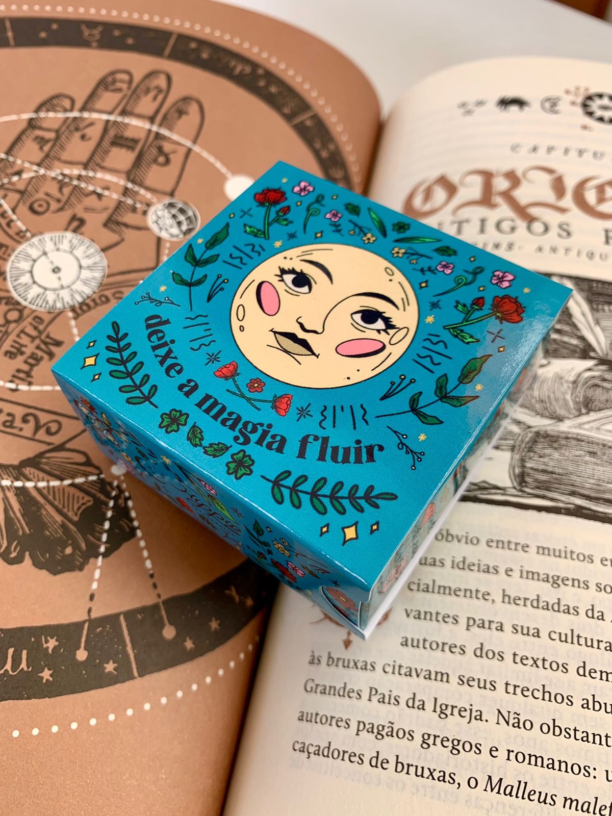 A embalagem Deixe A Magia Fluir traz uma mensagem especial antes mesmo do presente ser aberto. Além disso, é linda e pode ser usada como porta objetos.