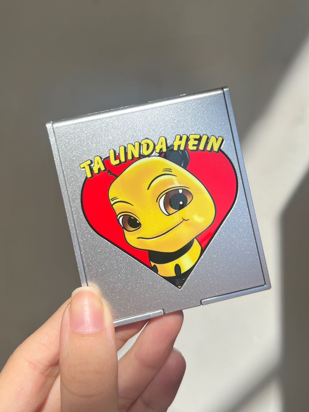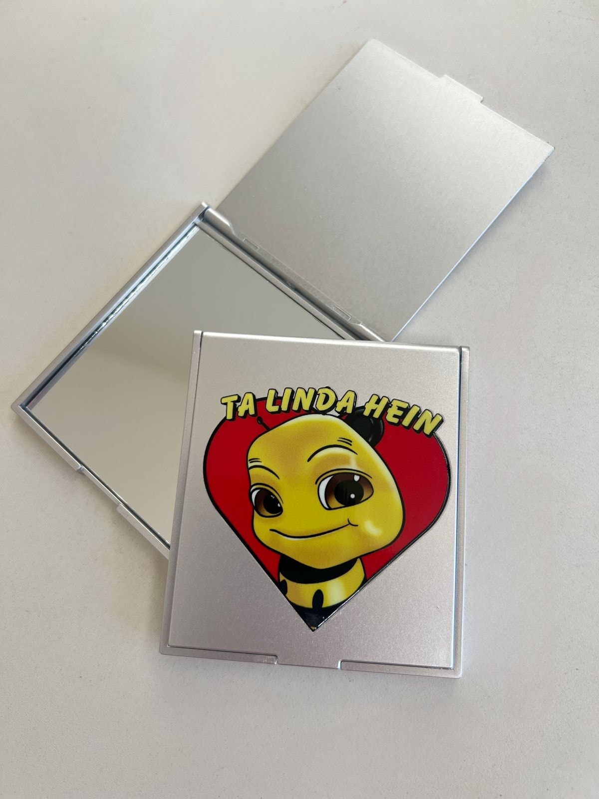 Espelho de bolso com estampa em alta qualidade. Acrílico fosco prateado, 7,5cm x 6,5cm.