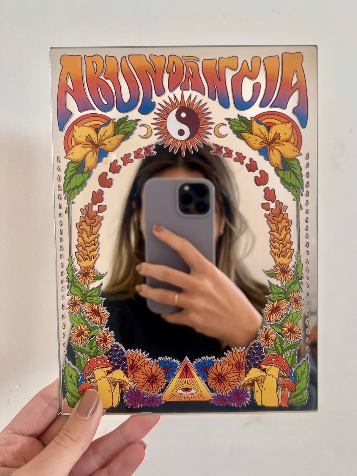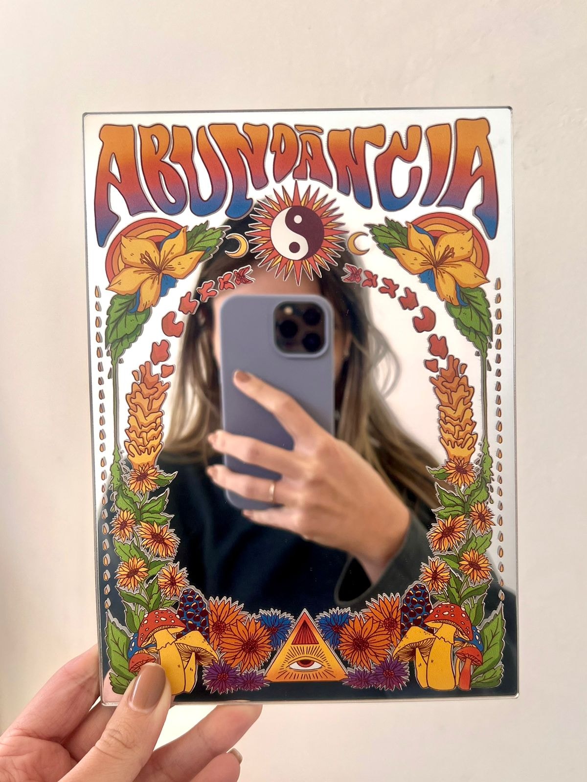 Espelho decorativo em acrílico com estampa em alta qualidade.
