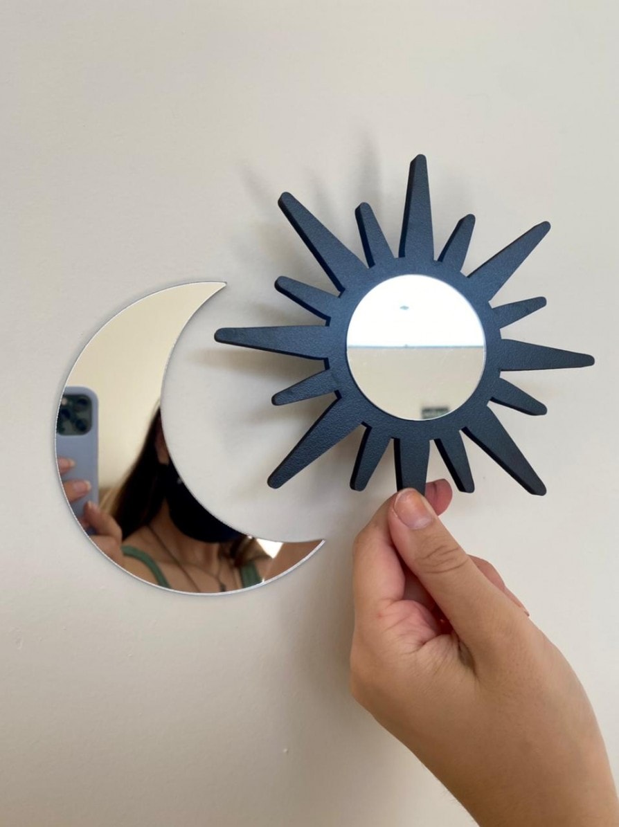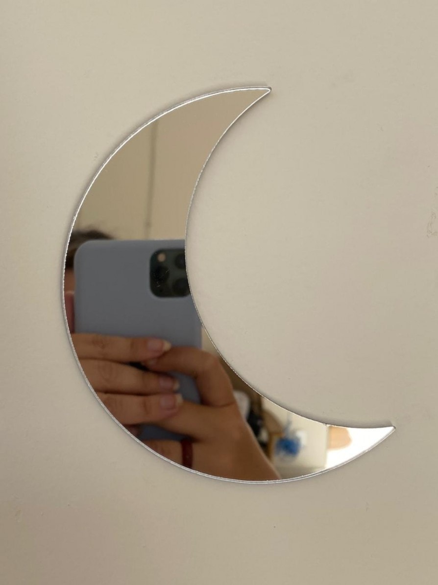 O espelho Lua representa a lua em um de seus ciclos. Este corpo celeste está associado à feminilidade, intuição e fertilidade. Ter atenção às fases da lua e o que elas nos dizem auxilia em uma maior conexão consigo mesmo e com seus processos. Ajuda a entender o momento pelo qual está passando e o que esse período pede.