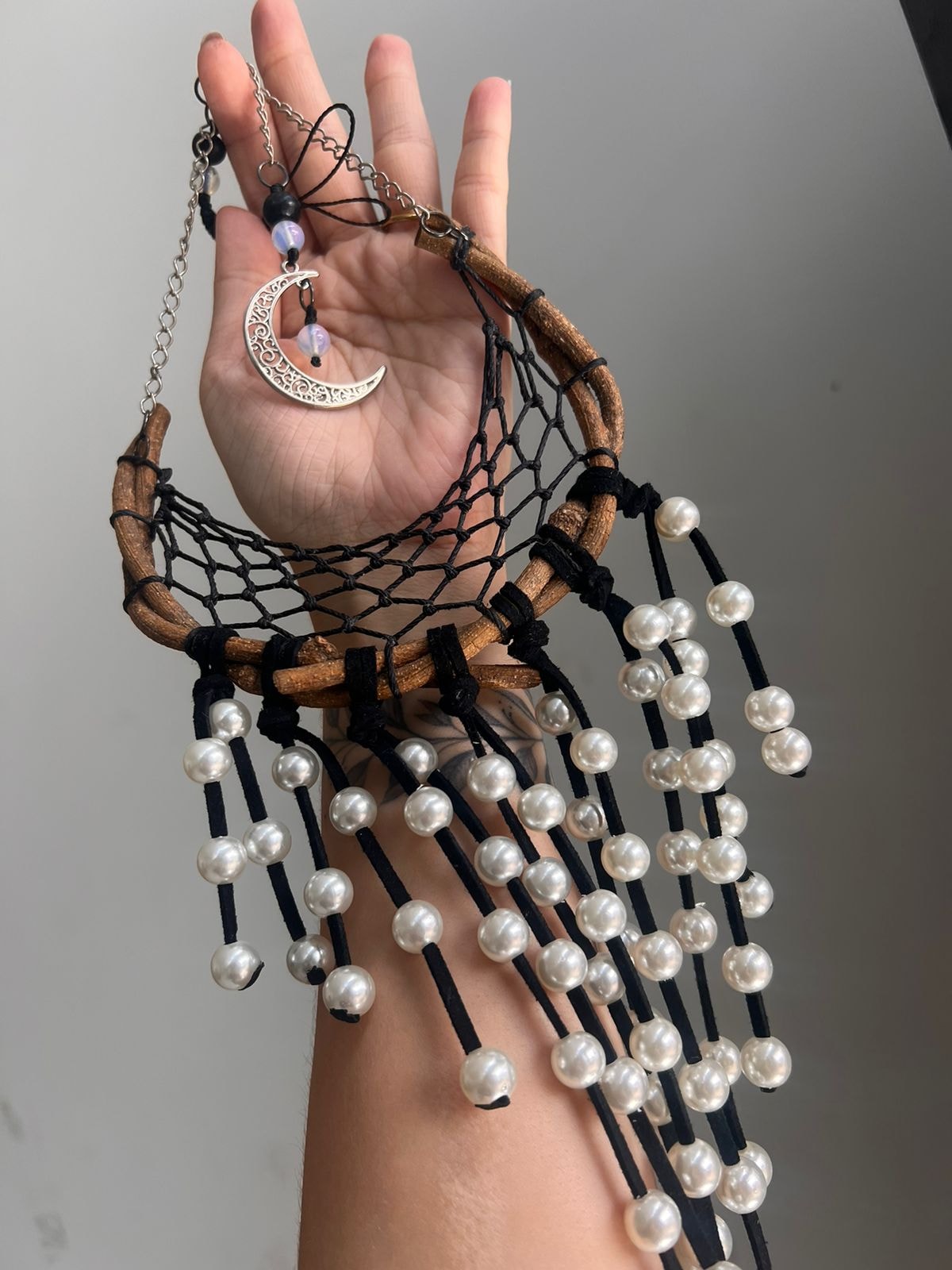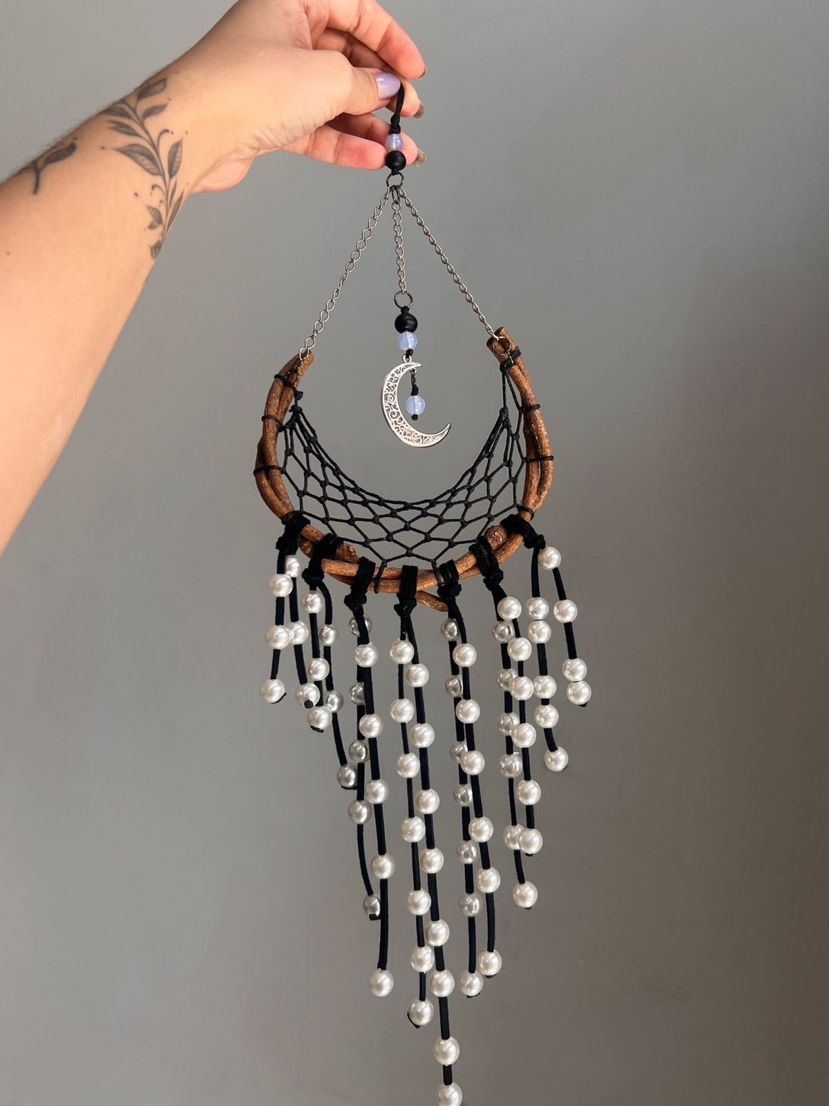 Filtro dos sonhos artesanal com pedra da lua.