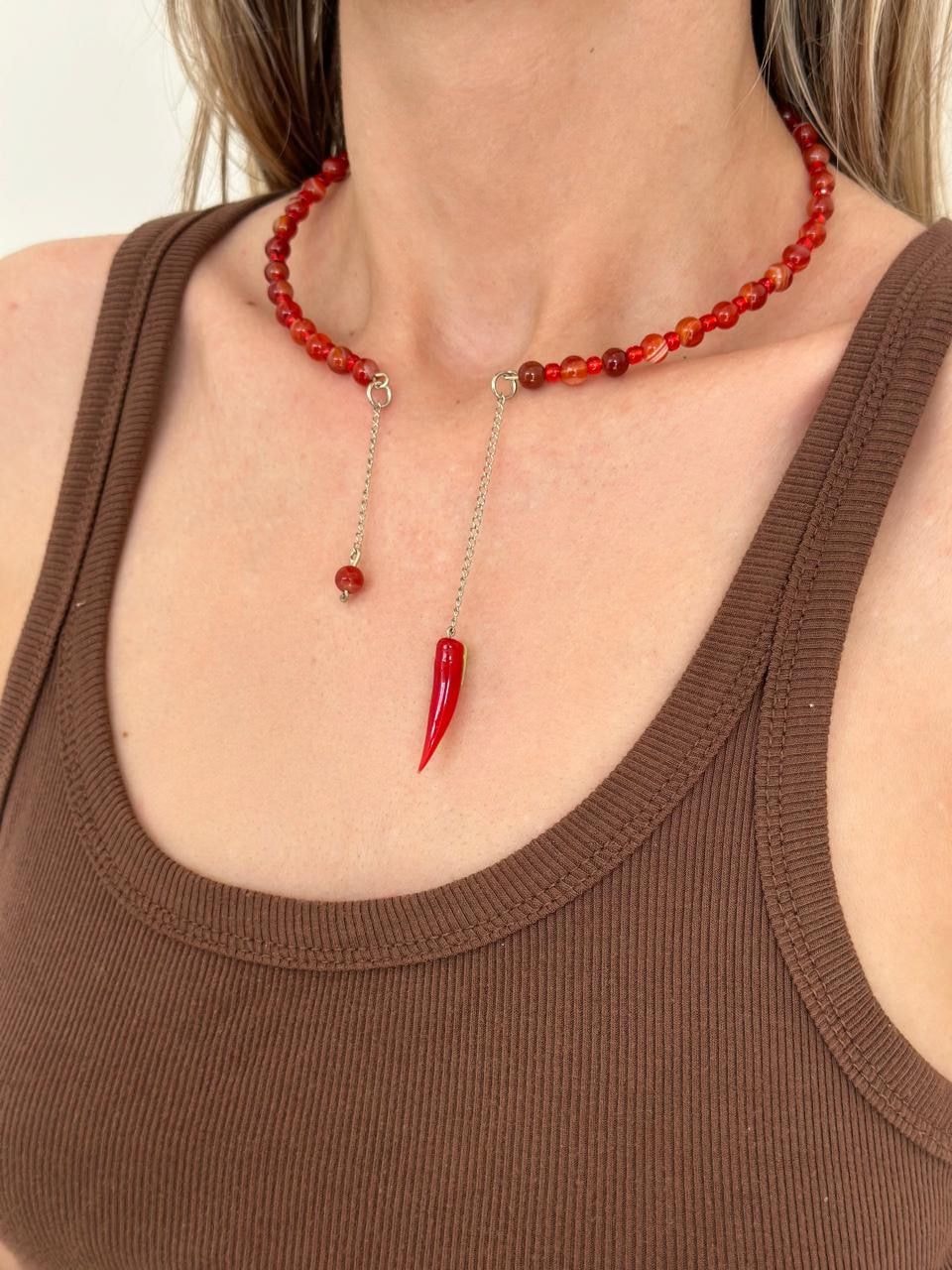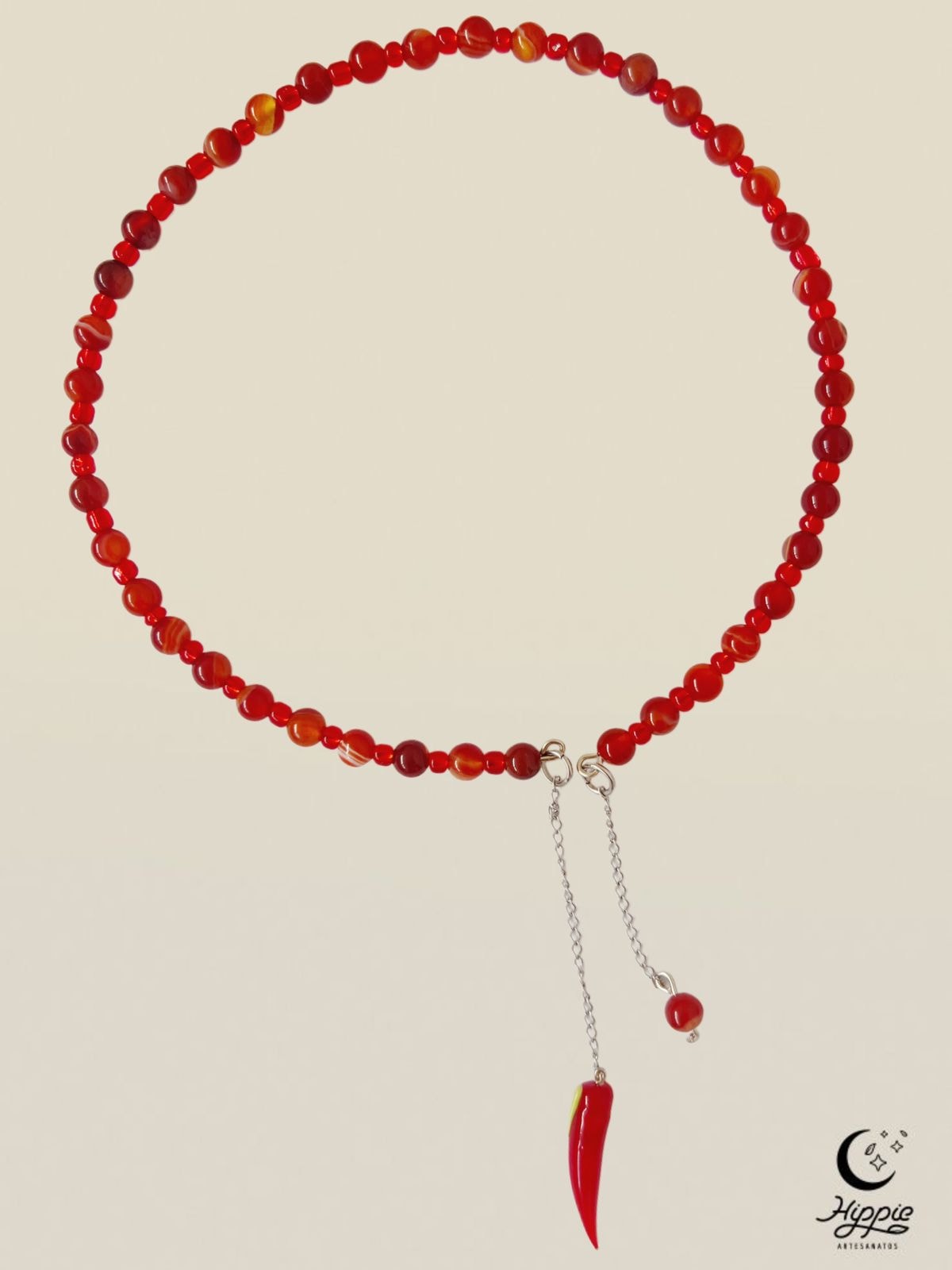 Gargantilha artesanal de Ágata de fogo e miçangas.