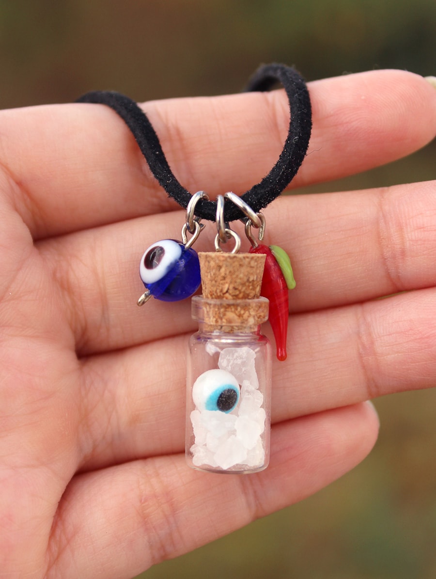 Gargantilha com pingentes Olho Grego, Pimenta e Sal Grosso.