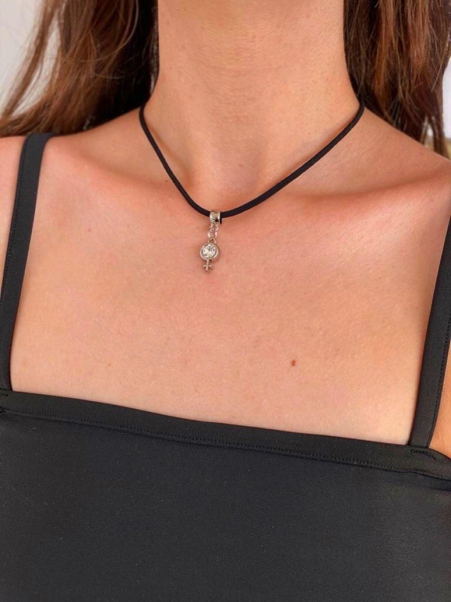 Material: Cordão em camurça sintética, pingente com zircônia e banhado em níquel.