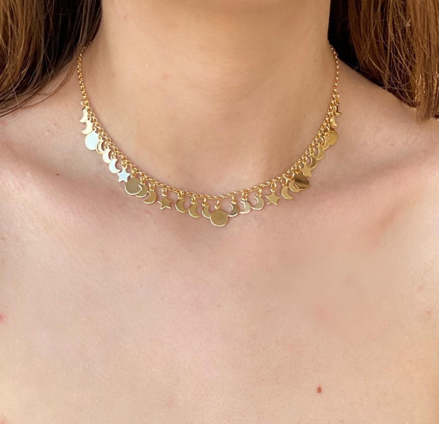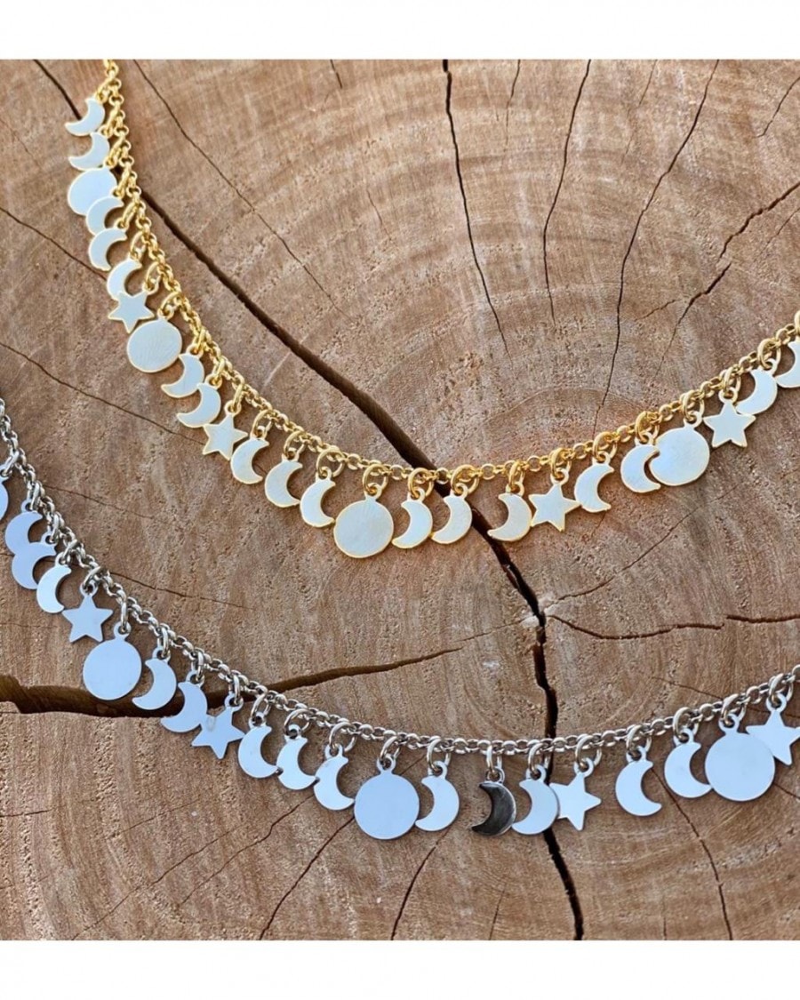 A gargantilha Fases da Lua e Estrelinhas pode ser usada como um amuleto. Colocando sua intenção, você pode atrair intuição, sabedoria e proteção espiritual com o uso destes elementos.