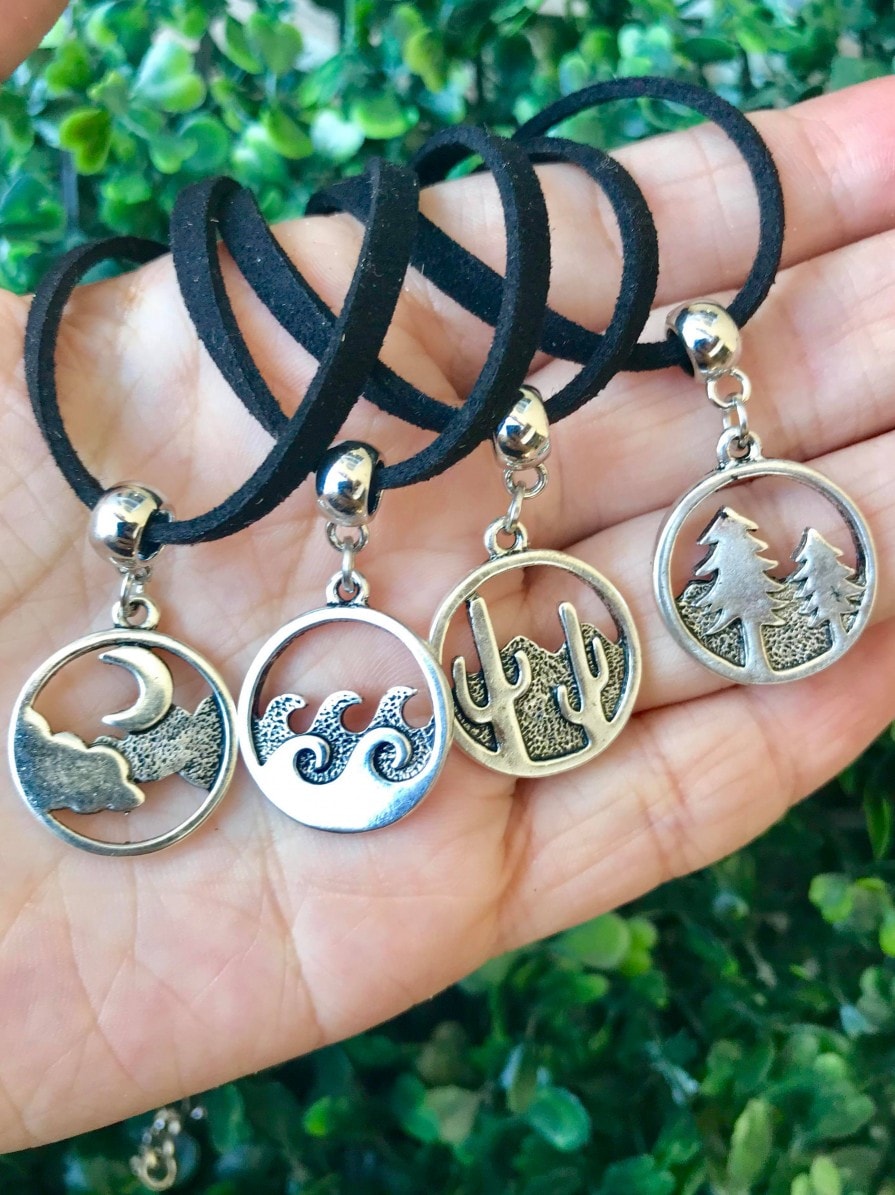 A gargantilha paisagens representa os elementos naturais e a beleza da natureza.