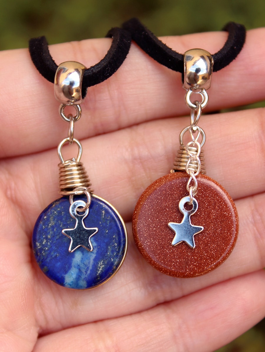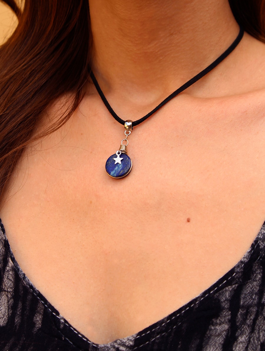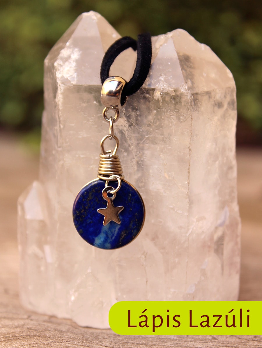 Gargatilha Estrela com Pedra do Sol ou Lápis Lazúli.