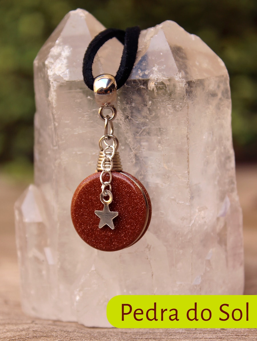 Material: Cordão de camurça, pingente de metal e pedra natural.