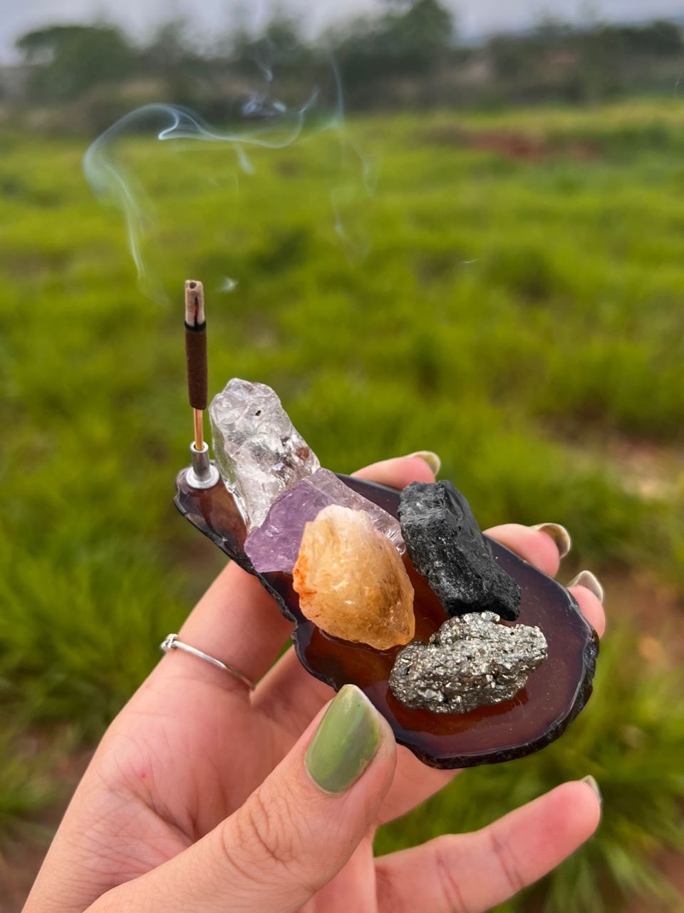 Base de Ágata, com outros cristais energéticos fixados atraindo as melhores energias.