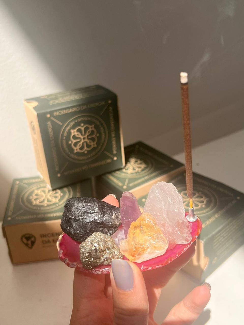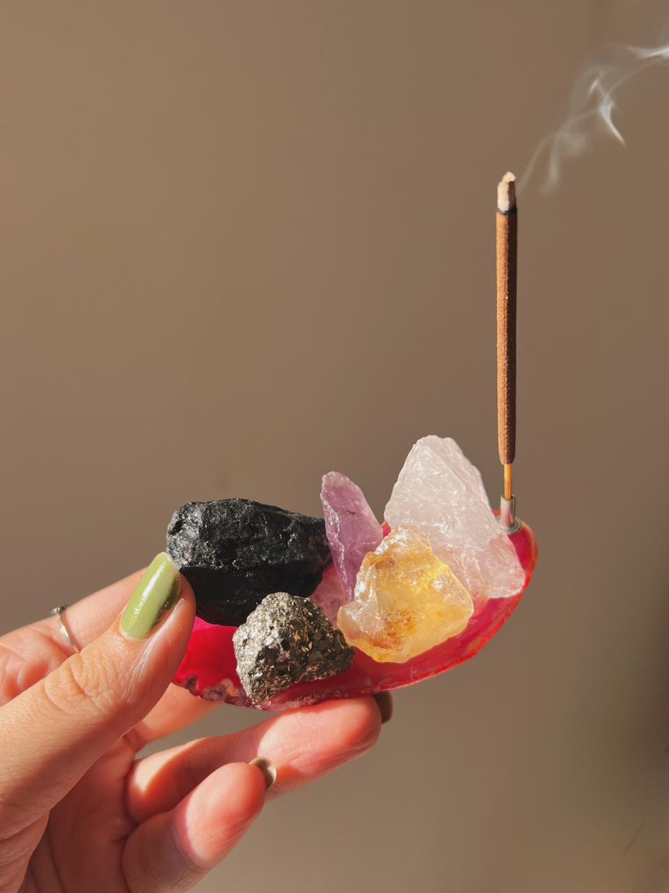 Base de ágata, com outros cristais energéticos fixados atraindo as melhores energias.
