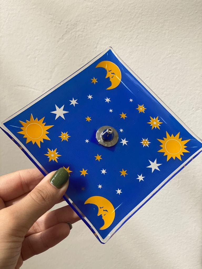 Símbolos escolhidos para a composição: Sol: Na astrologia, indica a área da vida em que você desperta maior consciência sobre quem é e qual o seu papel no mundo. É o impulso da vida, a vitalidade, a mente consciente; Lua: No mapa astral, representa a natureza básica dos nossos instintos e emoções. Fala sobre nossas necessidades mais profundas, nossos hábitos e nosso inconsciente; Estrelas: Representam a luz, a esperança e a espiritualidade.