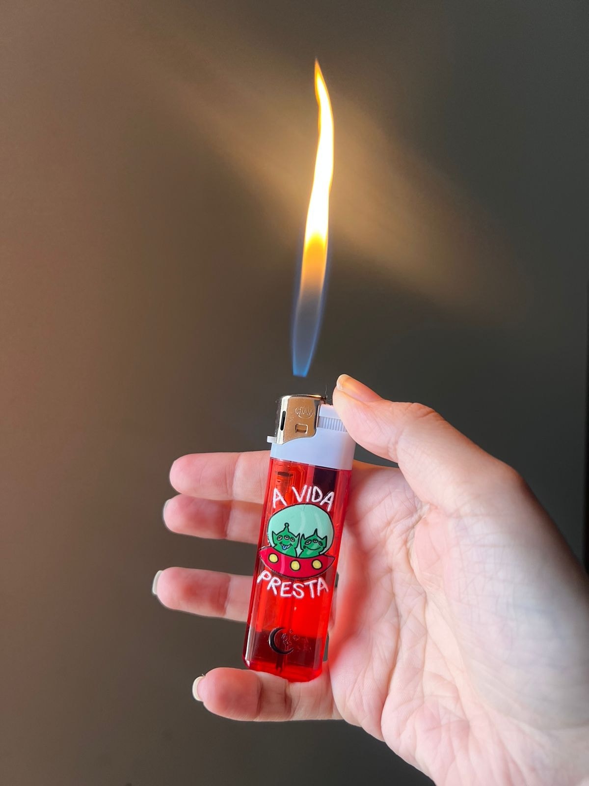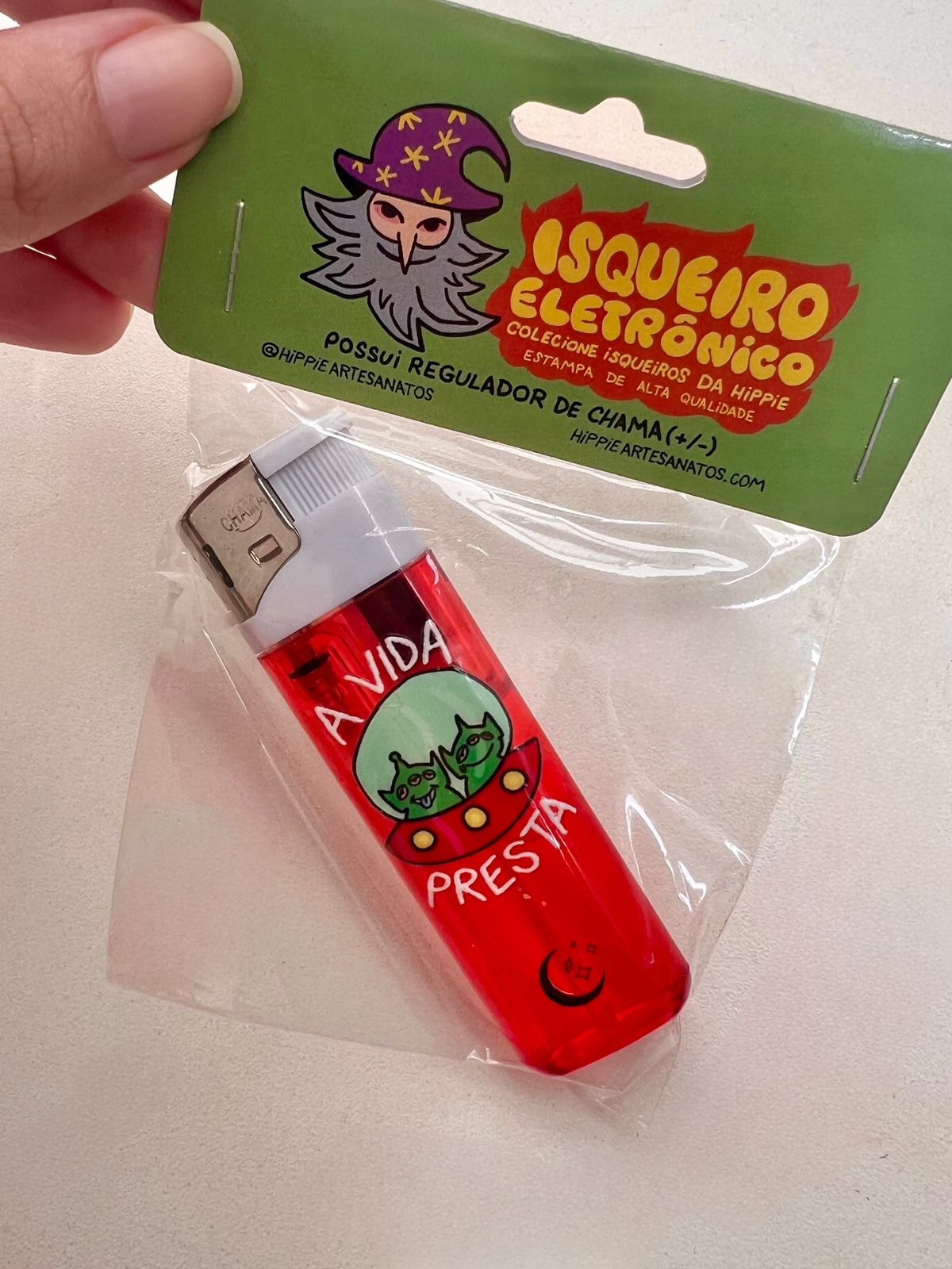 Isqueiro eletrônico com estampa exclusiva da Hippie em DTF UV. Possui regulador de intensidade da chama.