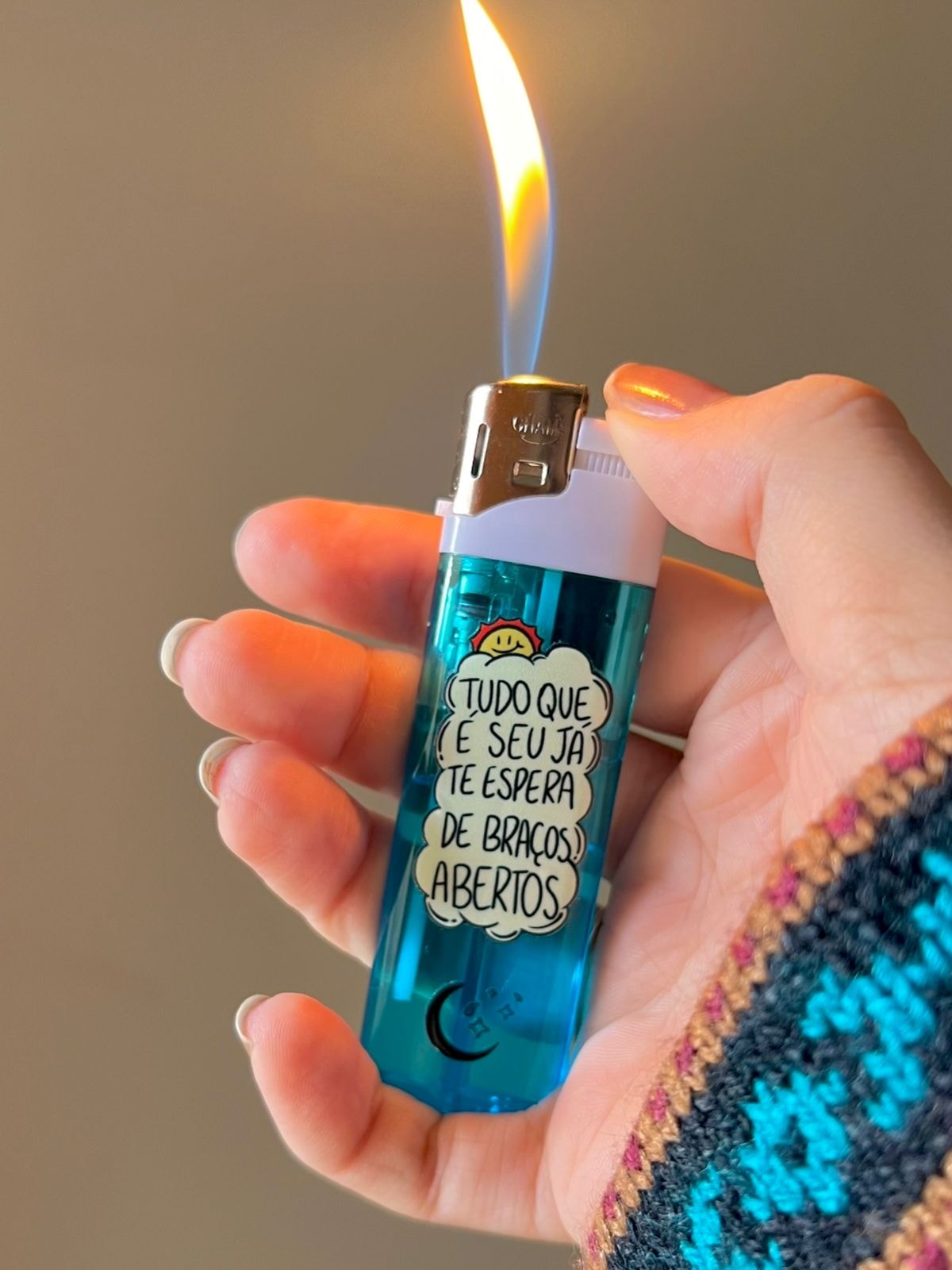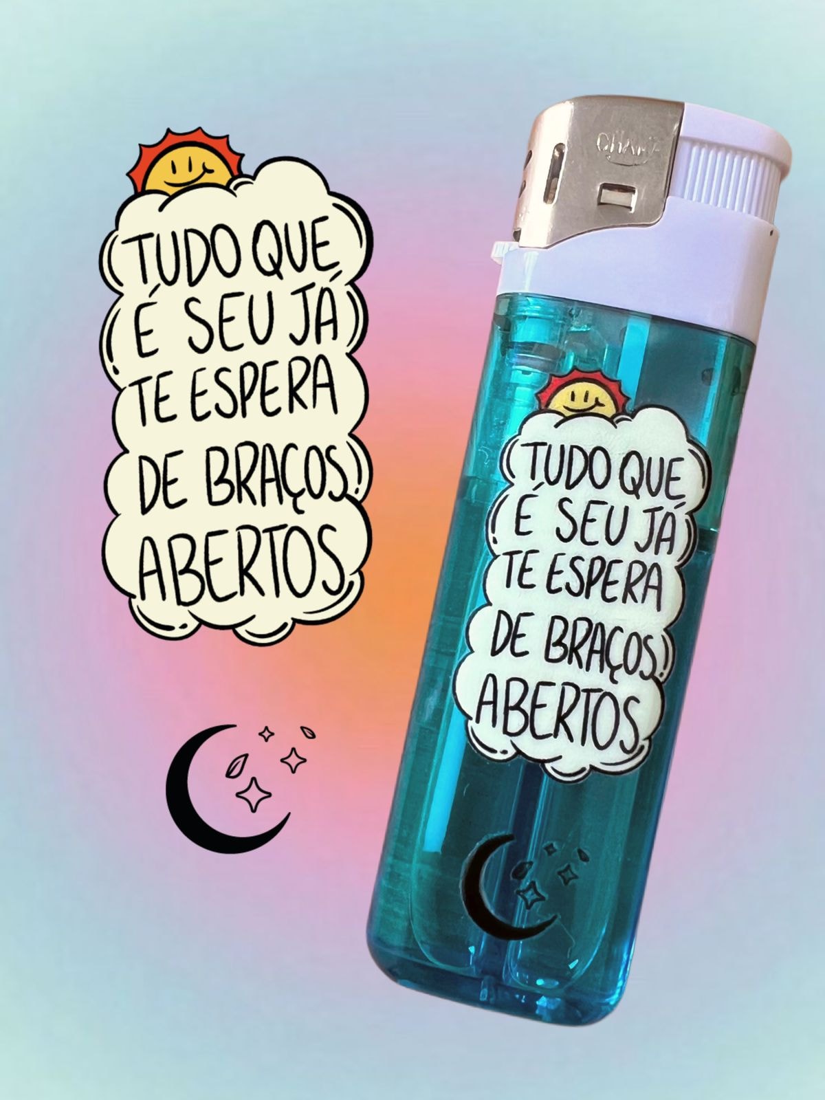 Isqueiro eletrônico com estampa exclusiva da Hippie em DTF UV. Possui regulador de intensidade da chama.