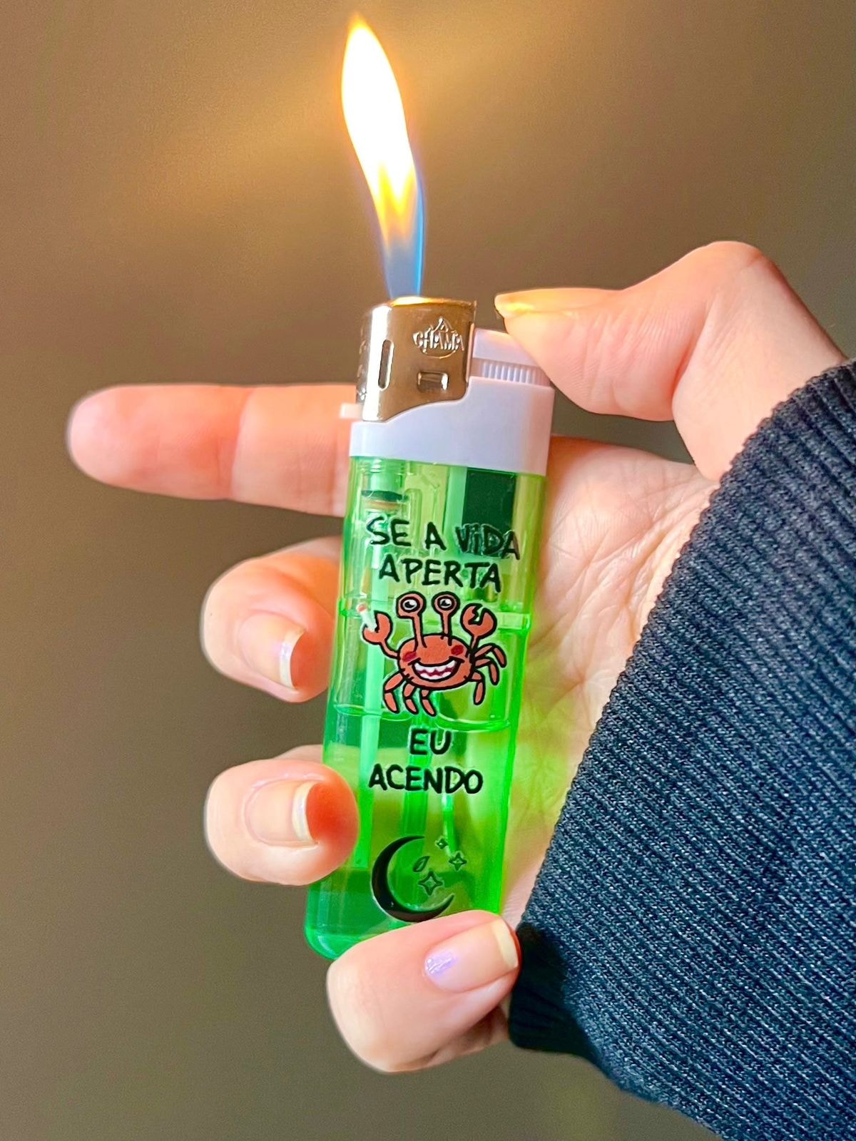 Isqueiro eletrônico com estampa exclusiva da Hippie em DTF UV. Possui regulador de intensidade da chama.