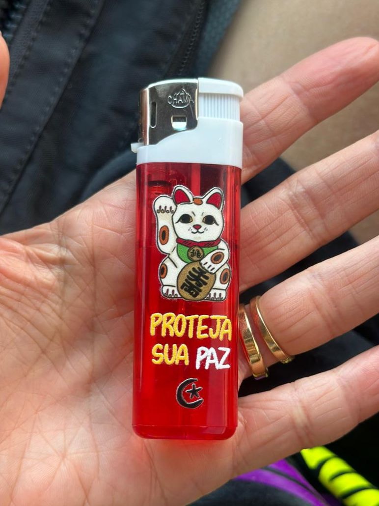 Isqueiro eletrônico com estampa exclusiva da Hippie em DTF UV. Possui regulador de intensidade da chama.