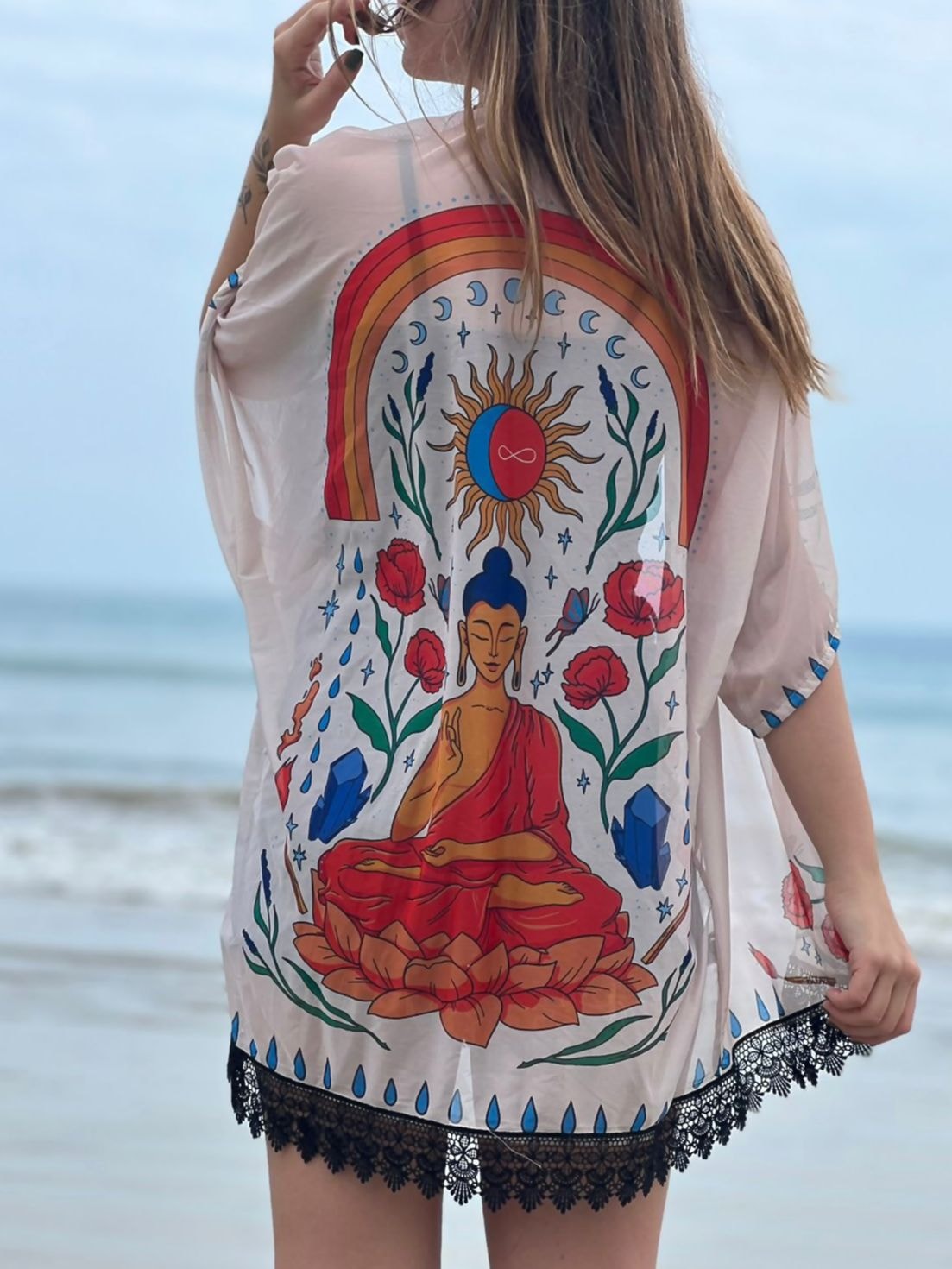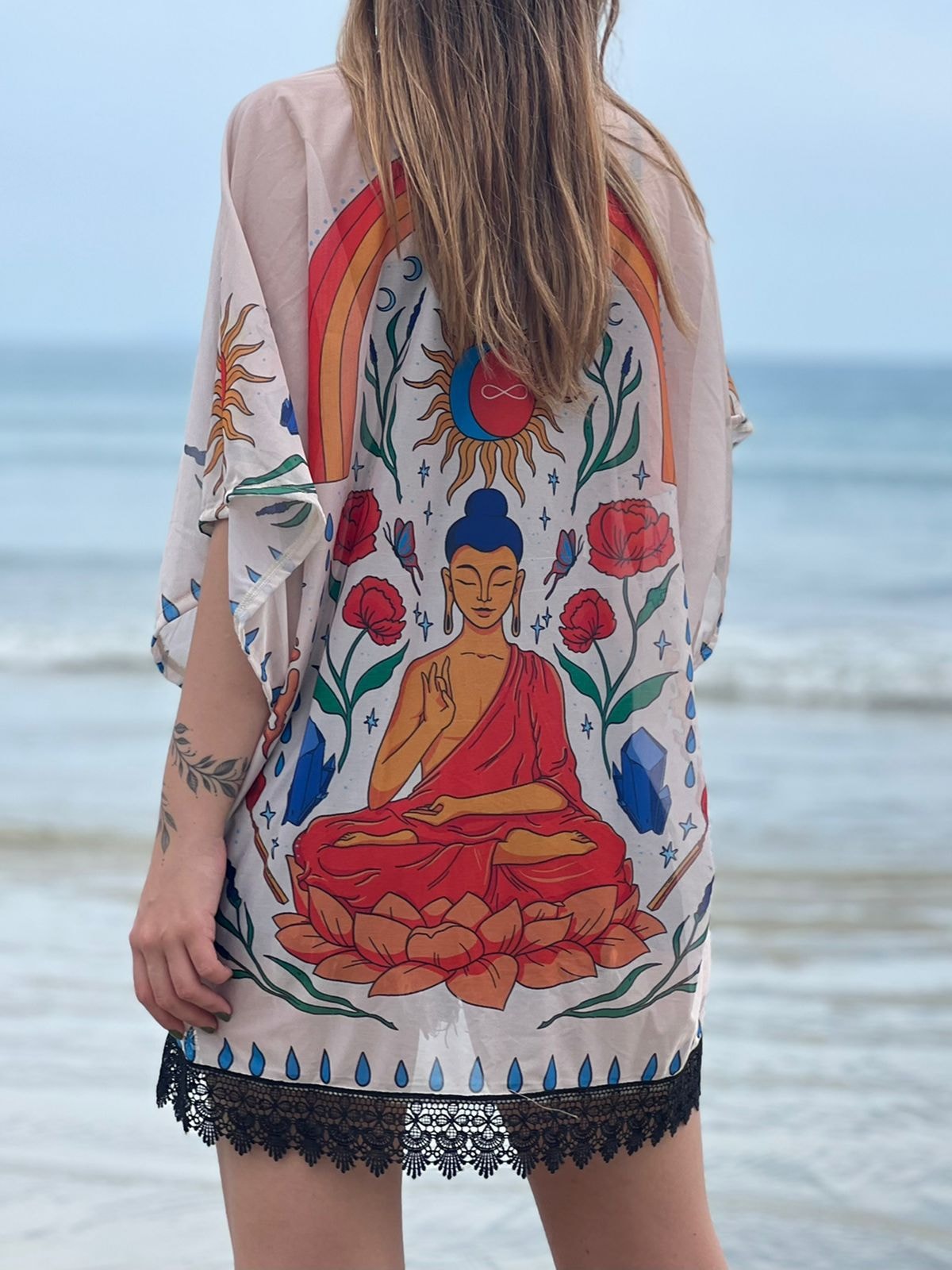O kimono Convoque Seu Buda é um convite para que você busque seu estado de plenitude através da prática do desapego, da generosidade e da compaixão.