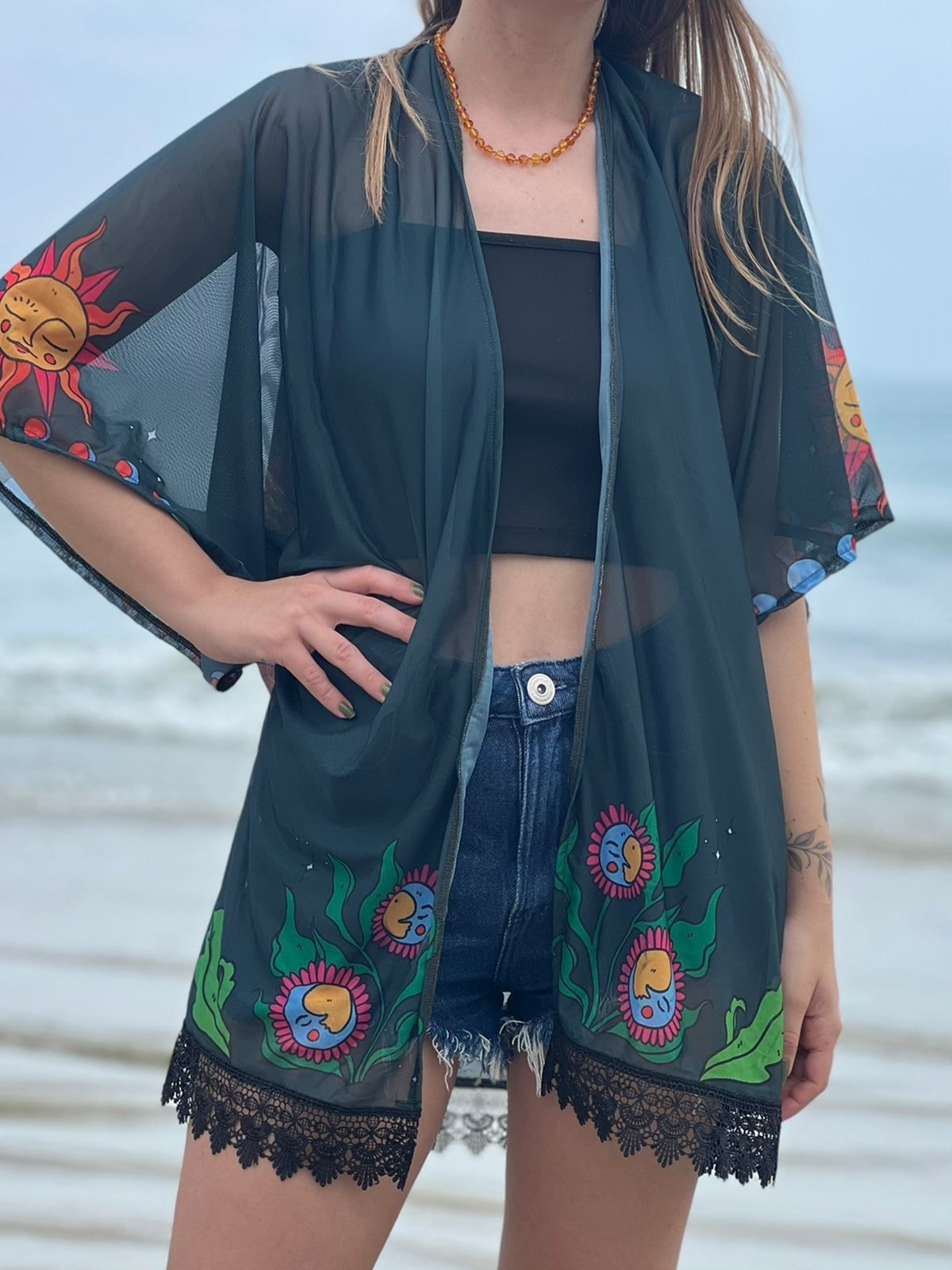Kimono exclusivo da Hippie! Com barra rendada.