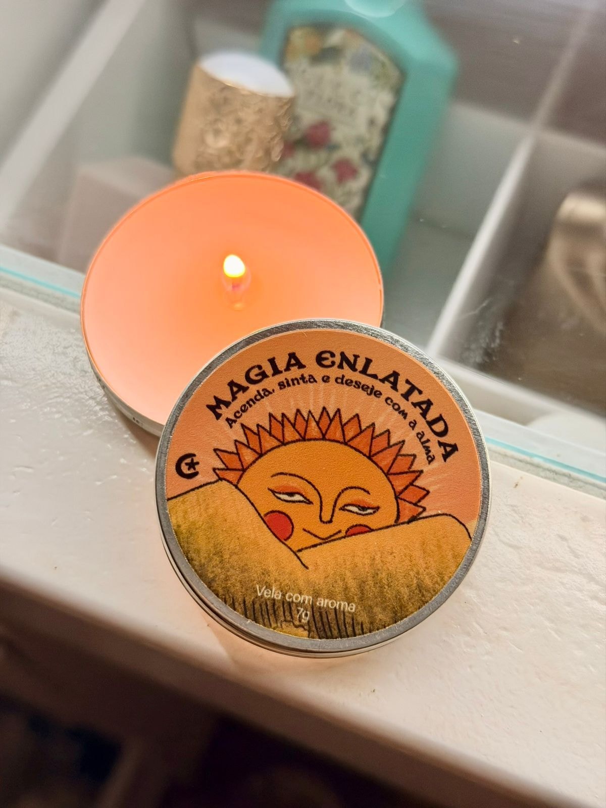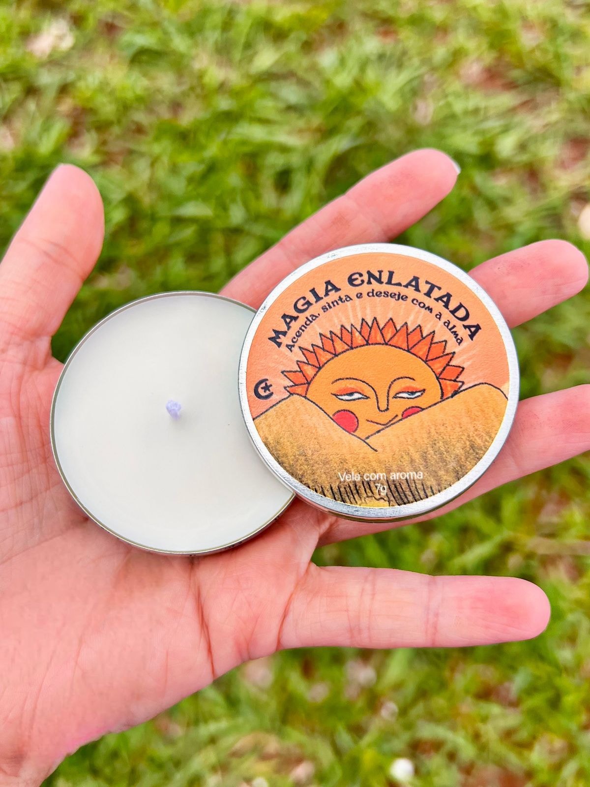 Mini Vela na lata de metal com estampa em DTF UV. Medidas: 5cm x 1cm 7 GRAMAS.