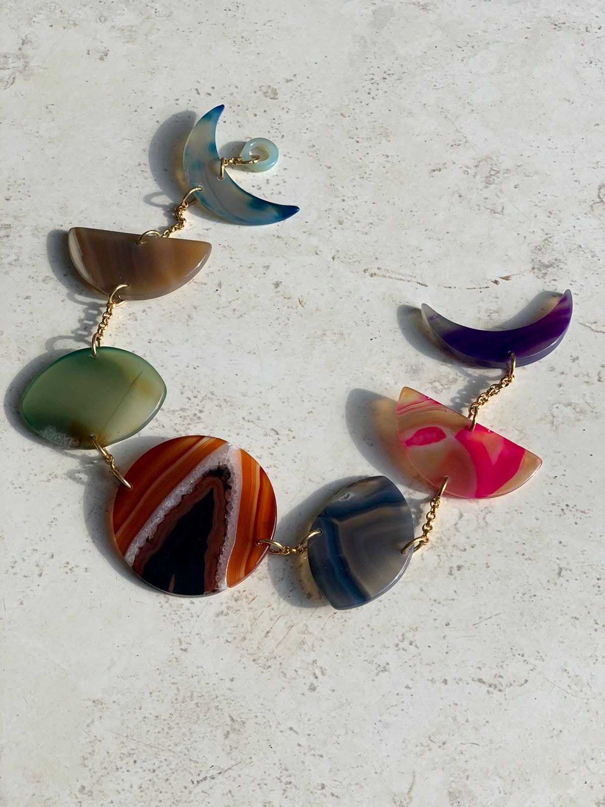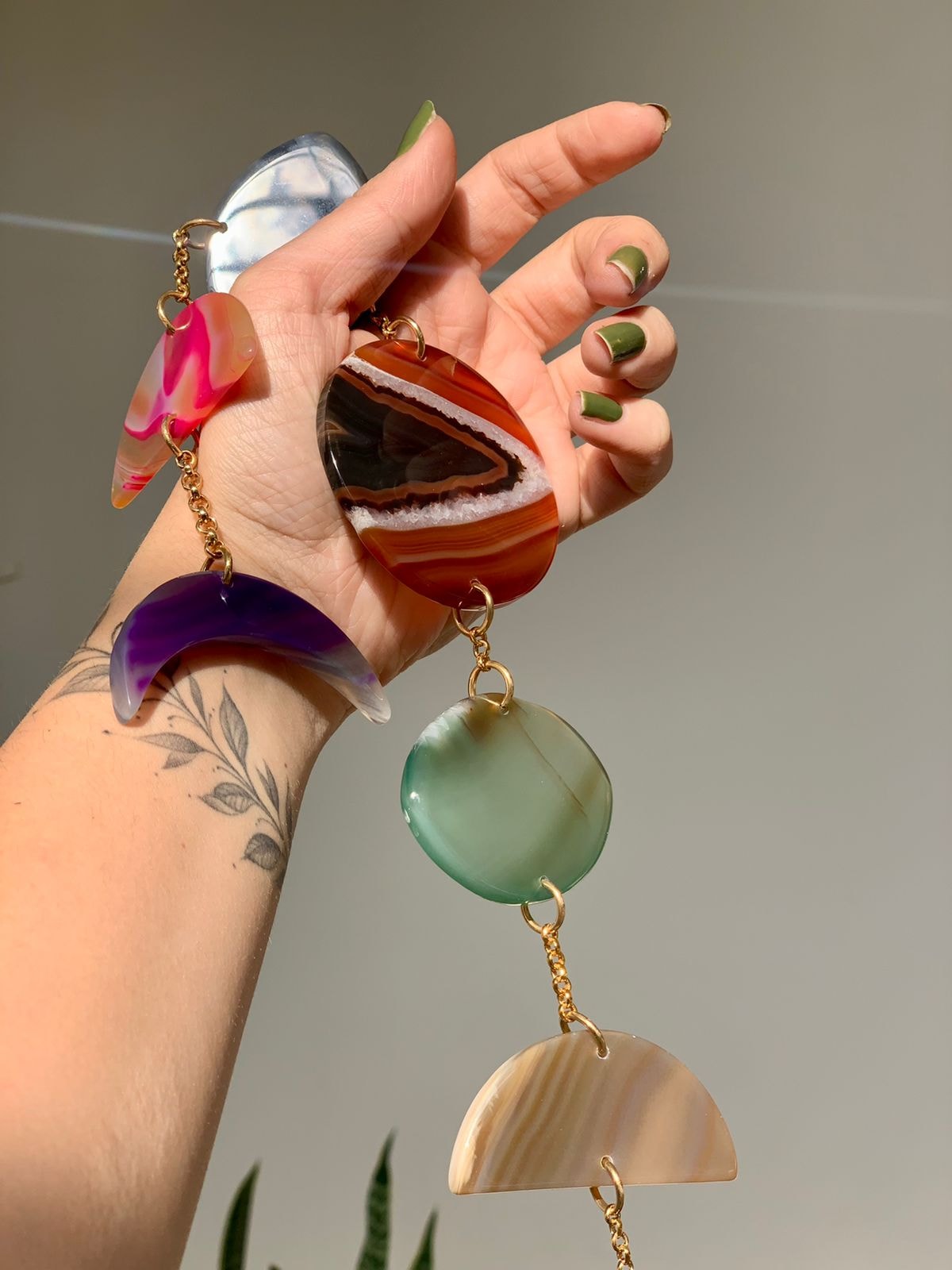 Material: Corrente de metal e pedras ágata coloridas naturais.
