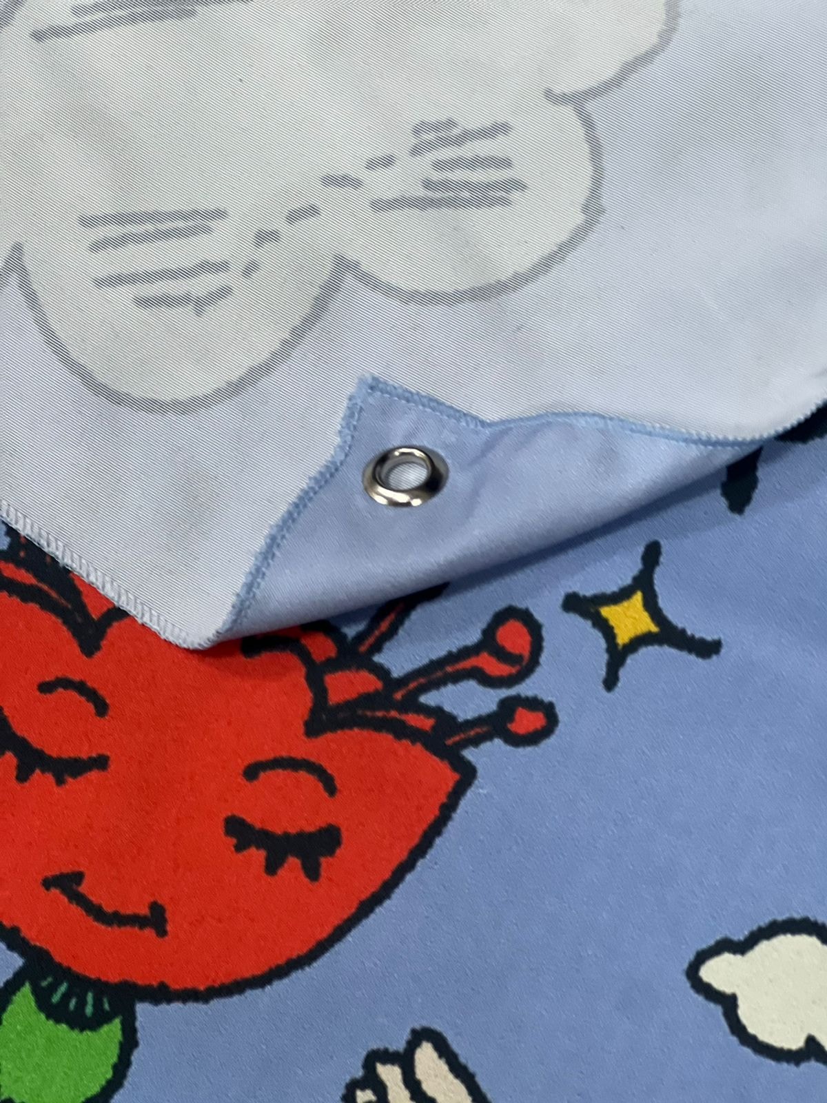 * Possui ilhós (círculo de metal para pendurar).