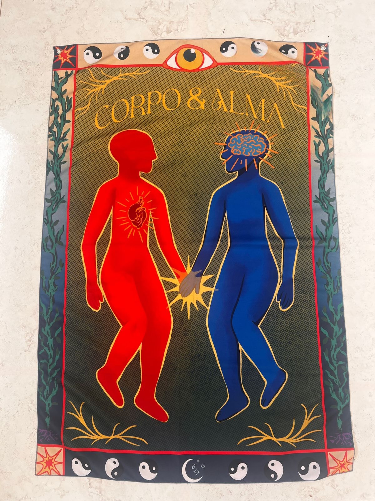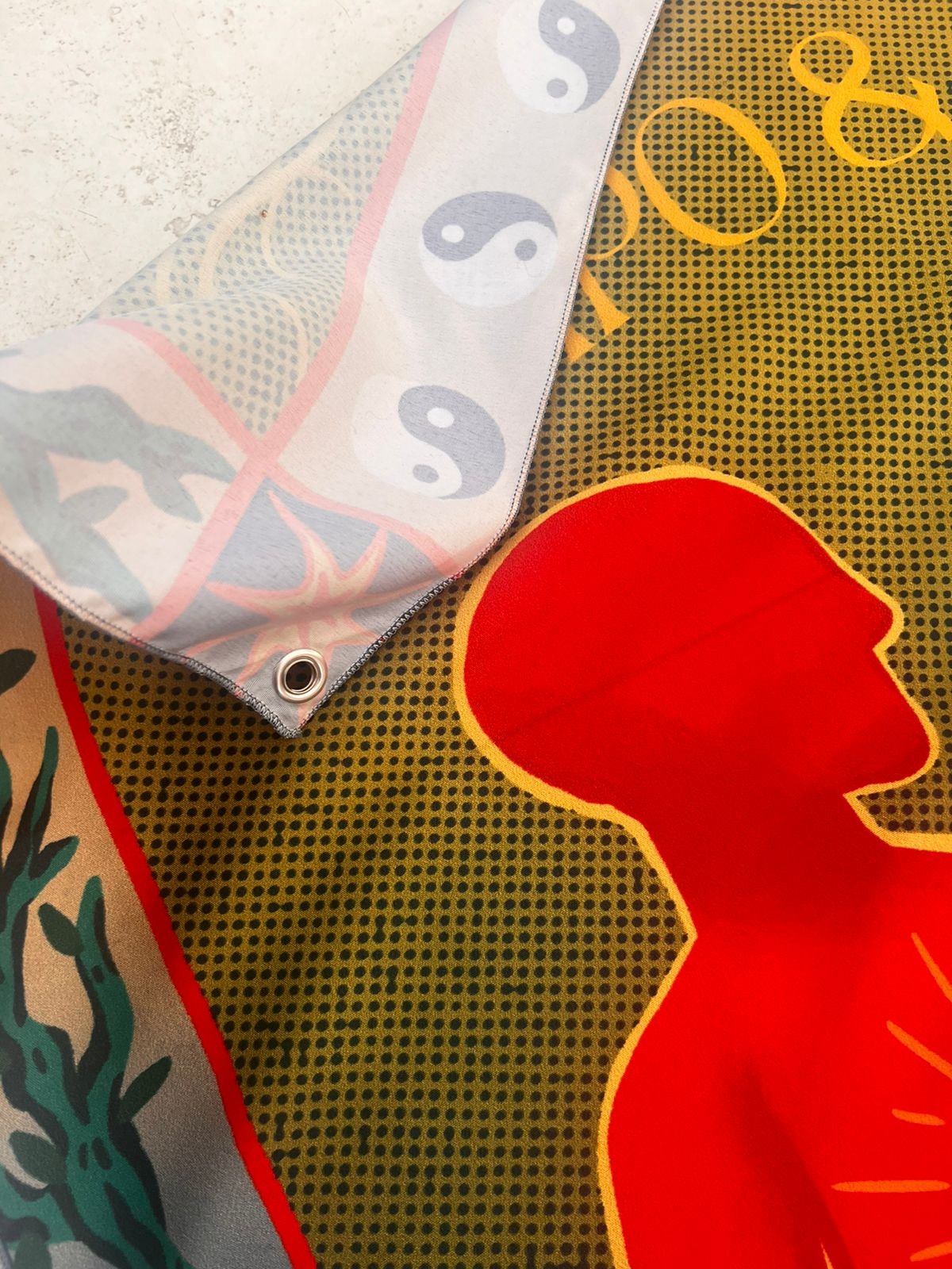 * Possui ilhós (círculo de metal para pendurar).